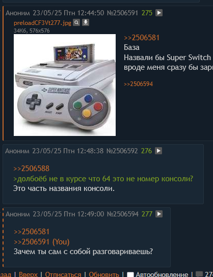>>2506850 Да я пошутил. Мне тоже хочется свич 2, жду не дождусь когда уже мой предзаказ приедет сразу куплю подписку, скачают обновления свои игр и начну играть в марио карт ворлд — это будет мой первы мк