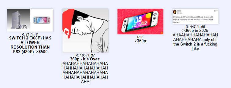 >>2506184 Насчёт обратки это надо садиться и разбираться. Но уже после релиза, когда консоль попадёт к людям, которые любят и знают свои игры, а не прокликивают их дежурно по 20 штук за рабочий день. Что с совместимостью? И когда с этим станет всё ясно, придёт ещё один момент: а как будут выглядеть 720p, растянутые на Full HD? Чем-то это похоже на стационар Switch, когда его подключают к ТВ. Но, во-первых, там режим дока чуть прибавляет пукселей. А во-вторых, дистанция и диагональ другие, нежели чем в руках. И никто и слова не сказал, что все игры получат буст до уровня дока Switch. Проще говоря, меня не отпускают подозрения, что игры OG Switch на втором могут выглядеть плохо, и его рано списывать со счетов.