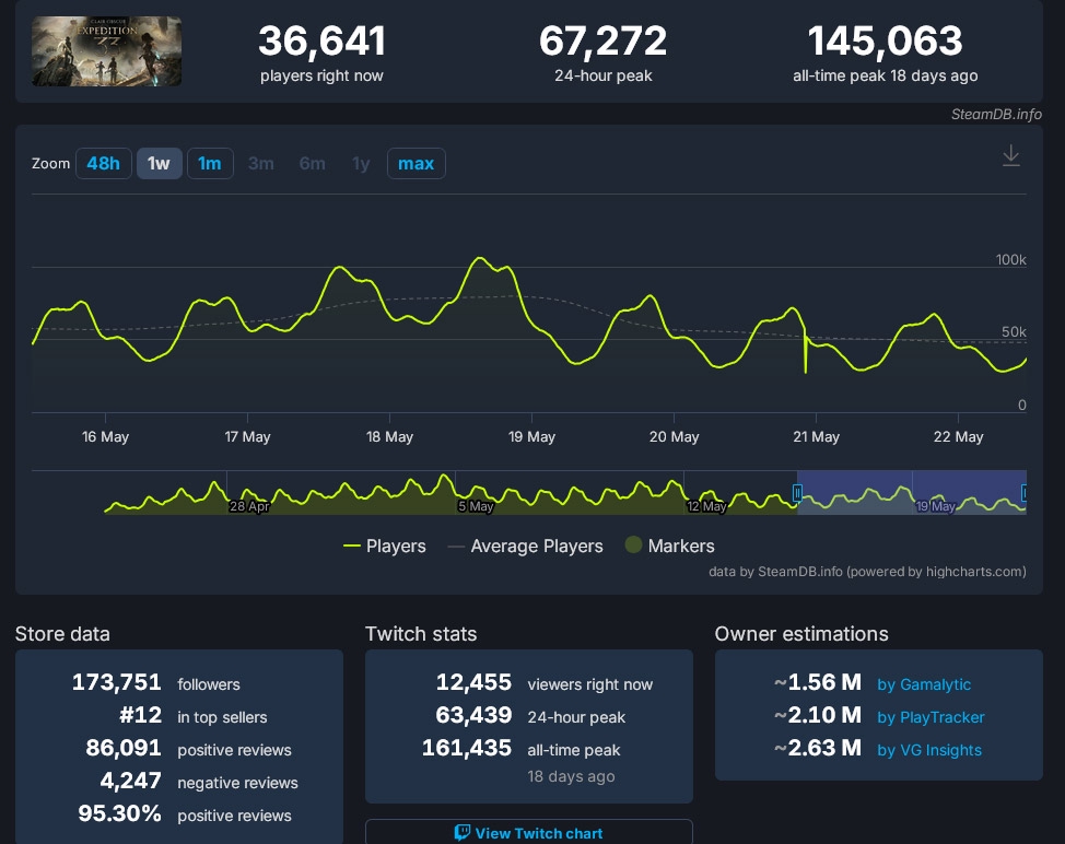 Продажи Clair Obscur: Expedition 33 составили 3,3 миллиона копий по состоянию на 27 мая 2025 года. Игра достигла такой отметки через 33 дня после выхода. Об этом объявили в студии Sandfall Interactive.