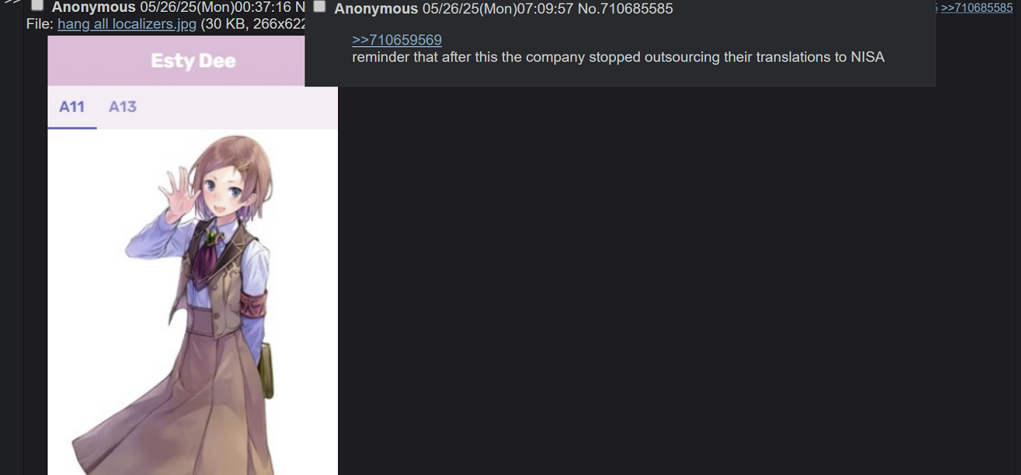 >>2507857 >когда проверяли локализации Никто никогда не проверял, всем похуй на калпонский и неточные переводы в трусонюхском говне с сюжетом для умственно отсталых детей.