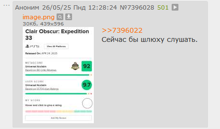 >>2506155 Нужно быть полным дауном чтобы в 2к25 придавать значение оценкам. Фактически это означает соглашаться с тем, что популярное = хорошее. Средний игрок очень непритязателен и просто играет в то что на слуху, и ему точно так юе заходят сюжеты западного сжв слопа и всяких там голливудских фильмов.