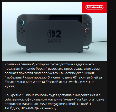1. Nintendo официально в Россию сейчас ничего не поставляет. Чтобы привезти консоль в Россию её нужно купить где-то по уже готовой цене, куда уже заложена маржа того продавца, у которого ты покупаешь, и все локальные пошлины и налоги, а потом привезти и продать тут. Заплатив за билеты, оплатив пошлину, склады и т.п. Вспомните, сколько на старте стоил Steam Deck или PS5 Pro.