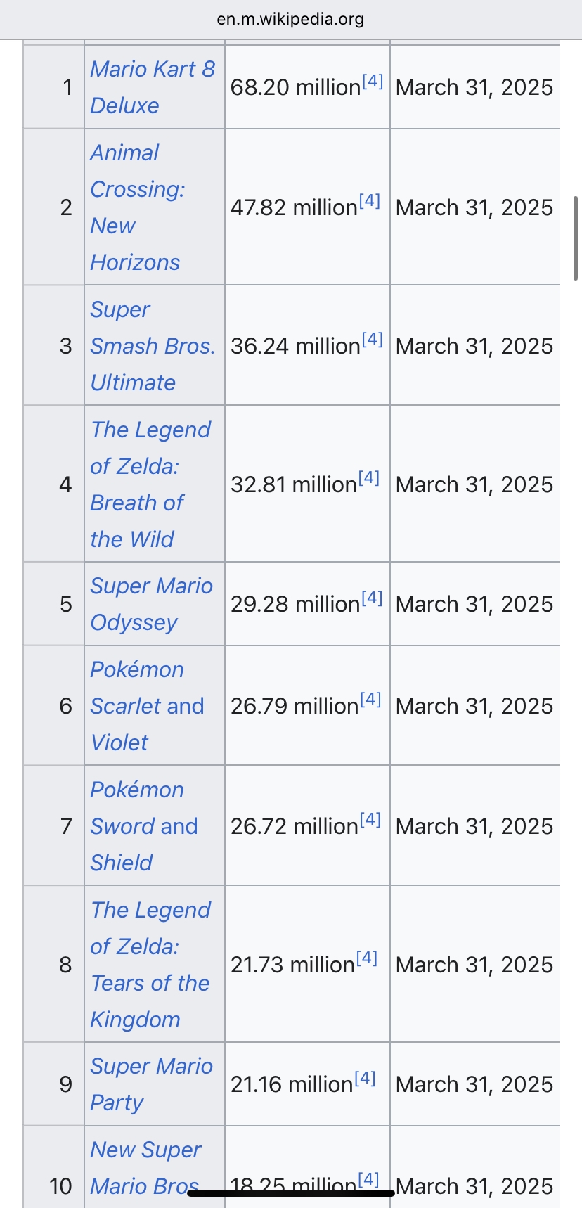 >>2510284 Ты пойми, что марио карт ворлд уже обогнал по продажам все хиты этого года, клер обскур, дум, обливион, сталкер. Сложи их продажи, и они окажутся меньше, чем у карта. И это при условии, сто в карт даже никто еще не играл. Как начнут, попрут обзоры и там отрыв будет в десятки миллионов