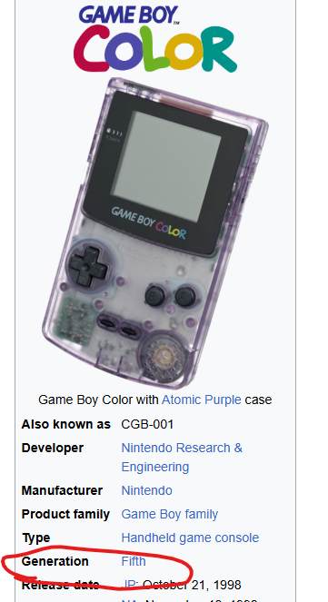 >>2510597 Я настолько скуф, что до сих пор до конца не понимаю что такое тикток. Ты наверное сильно удивишься но например сега сд и 32х считается вполне себе одни геном с смд. Как и фдс, хрень для н64 и прочее. Не всегда добавление какой-то штуки, которая тебе даже не даст запустить какой-то кусок библиотеки это новый ген. Но самое главное базово гбк общепринято считать одним геном. Разделения такого, чтобы найти это надо искать и это тупо плыть против системы, чтобы вытягивать несчастный псп лишний раз.