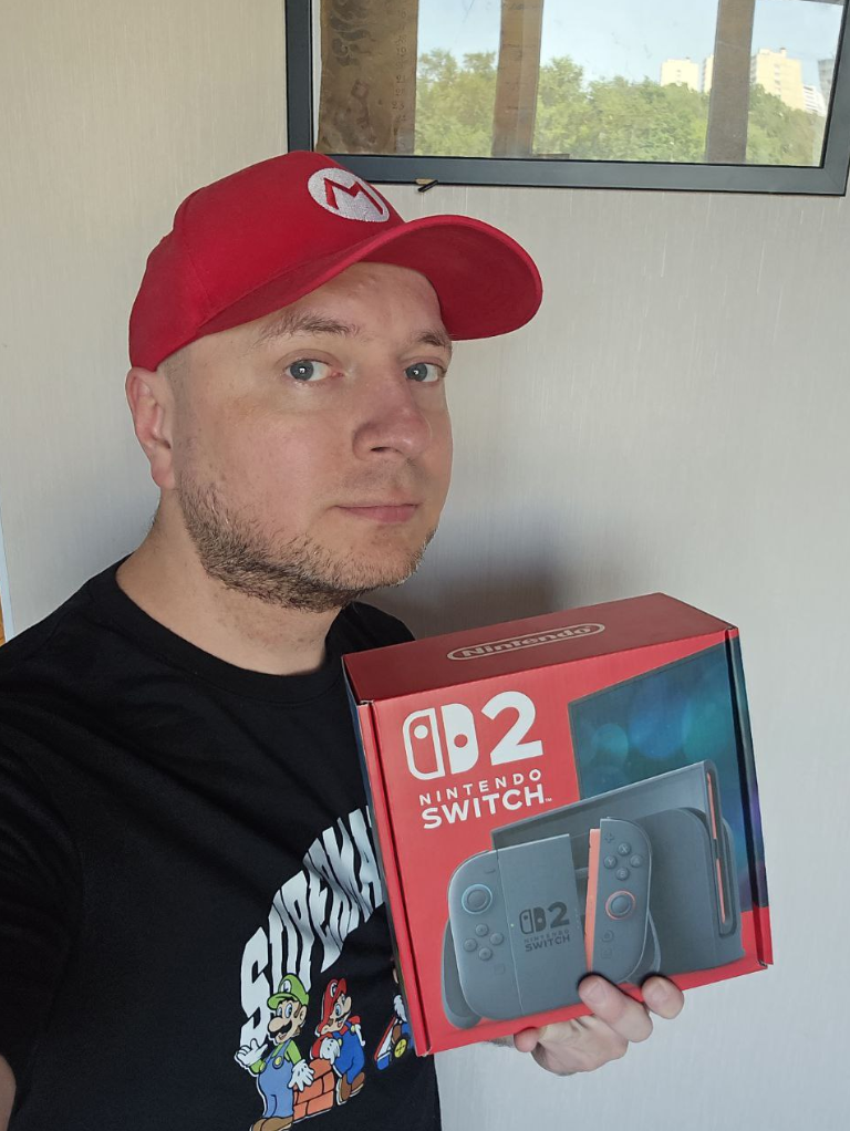 Всем привет. Чтож, в прошлом посте я делился радостью того, что стал одним из первых обладателей Nintendo Switch 2, а в этом делюсь "радостью" - похоже, я стал первым человеком получившим бракованную консоль.Решил я, значит, перед сном еще раз пощупать консольку, да случайно ее включил. Я этого не собирался до 5го числа, но так получилось. И вижу вот эту анимацию, что на фото сверху. Думаю, странно, джои же подключены. Что было дальше, можете посмотреть на видео.Таким образом, синий джой работает корректно. А вот красный... Консоль на него просто не реагирует. На нем не светится индикатор. Мертв.Недолгая была моя радость. Поставил на зарядку, может что-то изменится. Но верится в это слабо. Теперь обращаться к продавцу, самый вероятный сценарий - он консоль заберет, отправит туда где покупал, там диагностика... Короче говоря, подержал я консоль один из первых, а вот поиграю теперь не скоро. Класс.