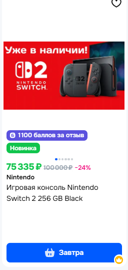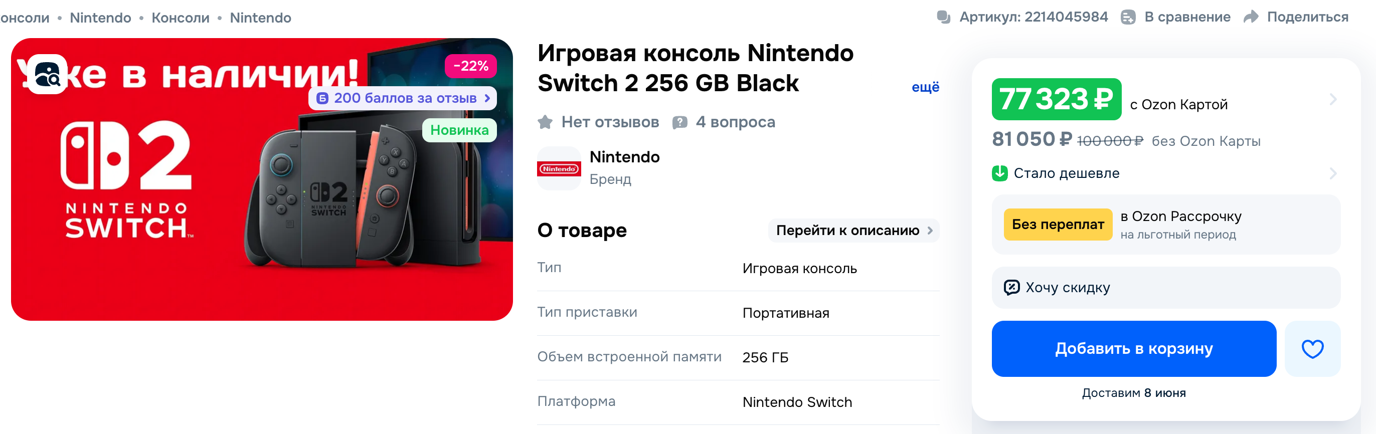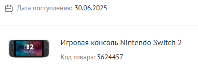 🔹 "Ачивка" обещает завезти бандл с "Mario Kart World" за 67000 к 10 числу, стандартная версия - с 16 по 20 июня за 62000. 🔹 Серовозы могут привезти раньше, следите за "Авито" и специализированными магазинами, но что с гарантией на такие - не ясно. 🔹 "GameChat" требует для регистрации телефонный номер, но российские (+7) не подойдут.