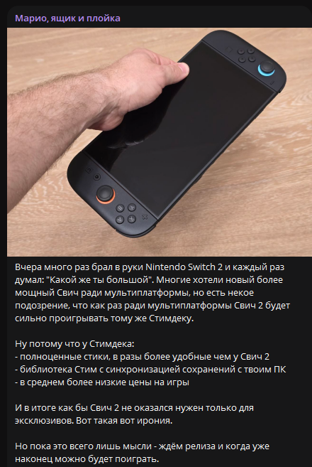 Люди, скорее всего, будут изучать Switch 2, и, возможно, NVIDIA или Nintendo где-то облажались или всё-таки что-то упустили, что было бы неплохо, конечно, но если быть реалистами, вряд ли мы получим что-то в ближайшее время.