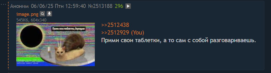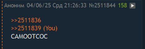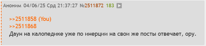 >>2511804 >Только по версии тебя Да нет, не только. А тебя, походу, реально задело, что анон раскрыл твою скуфидонскую сущность - ножкой топнул, когда пост написал?