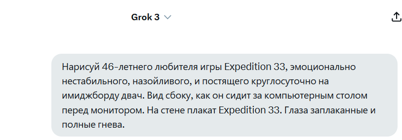 >>2511897 Пришлось дописывать ручками негативные характеристики, да? А иначе нейросеть сгенерила бы примерно следующее по запросам: 1. Игрок в Экспедицию. 2. Игрок в анимекал про школьников.
