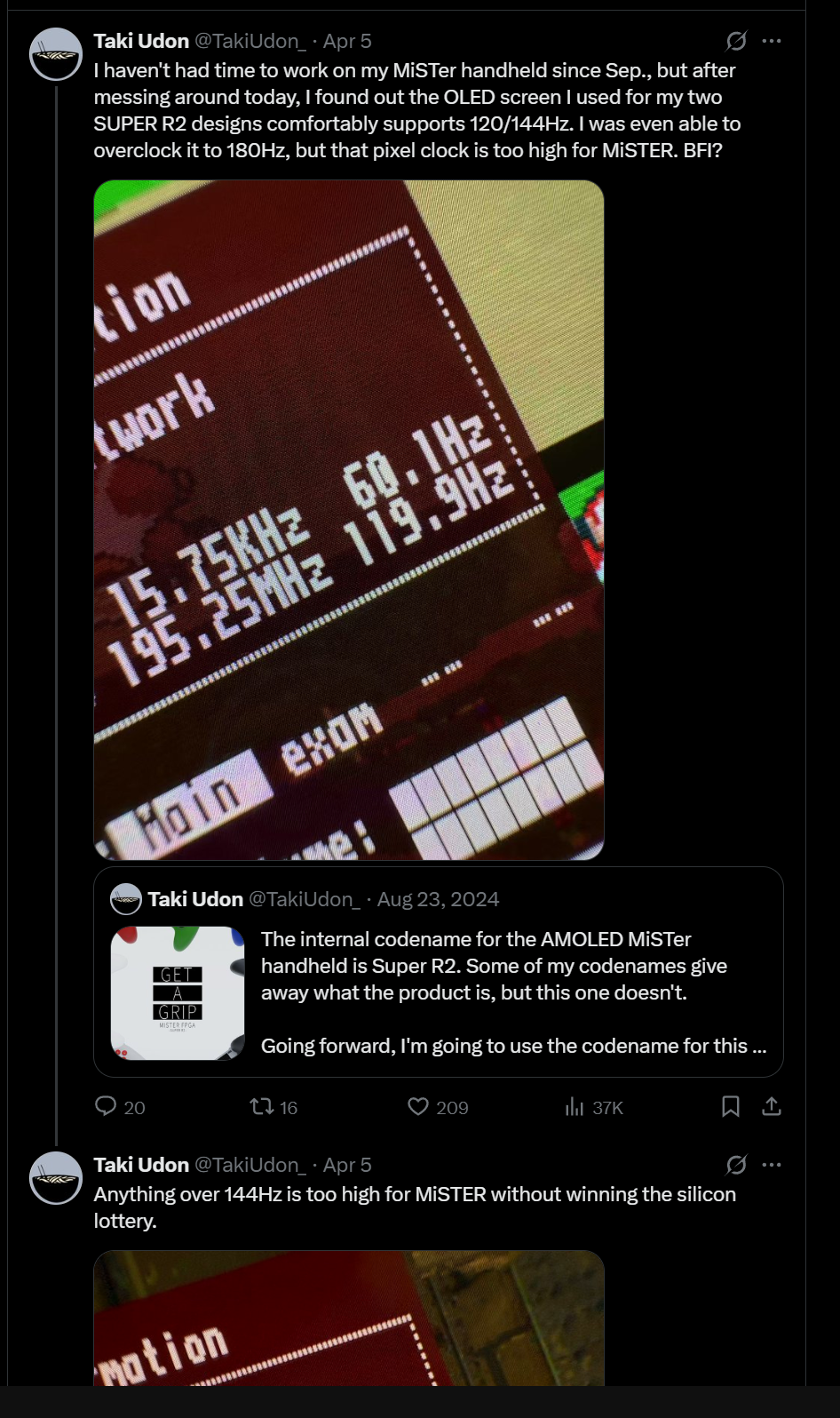 >>2517194 Шизоид ты сам. Это не олед, просто поссали на лохов, а они радуются. А я говорил что и в ретросегменте 120Hz пойдут. Я уже писал что Taki Udon делает OLED 120Hz FPGA карманную консоль, ее и буду брать если понравится дизайн.