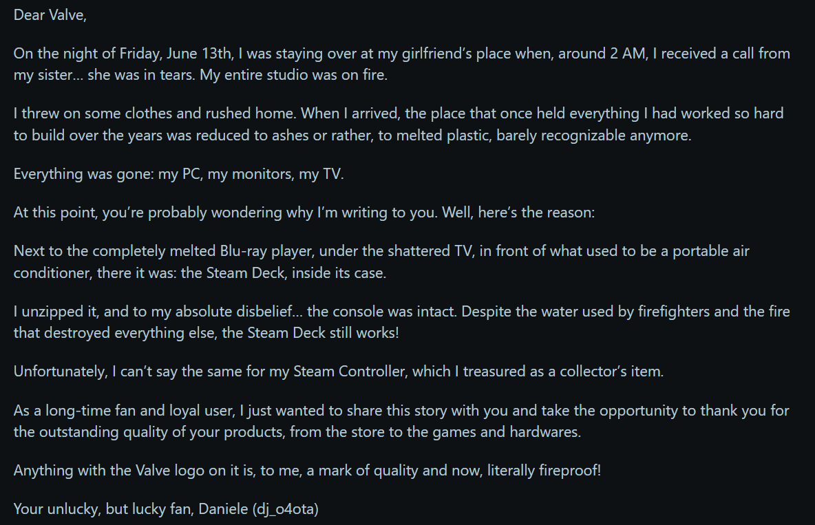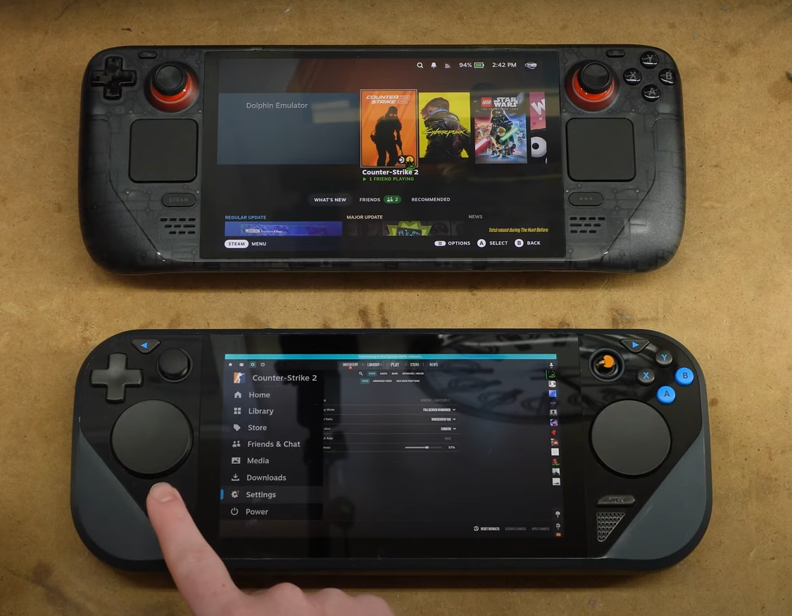 Q: Где и как купить этот ваш этот стимдек? A: Ozon, WB, DNS, Авито или любой другой магазин или продавец с отзывами. Будь внимателен и не торопись, цена на одну и ту же версию в разных местах может отличаться чуть ли не в три раза. Q: Какой объём брать? A: 256Гб хватит если играть по две-три игры за раз, ещё для индюшатины место останется. Берёшь 64Гб — сразу бери SSD на замену, WD-SN740 или Samsung pm991 к примеру. Либо докупай качественную SD-карточку, например SanDisk Extreme Pro либо Samsung Pro Plus. Q: В ААА не поиграть? A: Поиграть. Относительно свежие ААА дают 30 кадров и более в средне-низких, есть всякие фпс-локи и прочие настройки для совсем тяжёлых. Q: Сколько держит батарея? A: Зависит от выставленных настроек, яркости и самой игры. От 1.5ч в традиционно неоптимизированном кАААле до 6ч и более в безграфонном инди. OLED-версия живёт от батареи на 10-20% дольше. Q: Как устанавливать пиратские игры? A: Перенести установленную (или портабл) папку с игрой с компутера на дек и "добавить" её EXE-файл в Steam. Способов переноса несколько, гугл в помощь. Либо поставить на дек торрент-клиент и скачать игорь сразу туда. Q: Установил пиратку, а она лежит в библиотеке серым кирпичом, хочу обложечку! A: Ставишь decky — сборник плагинов. В нём SteamGridDB — плагин для удобного навешивания артов и обложек. И ещё много всякого. Q: Эмуляцию завезли? A: Естественно. Есть отдельные эмуляторы во встроенном магазине приложений (где всё бесплатно), есть Emudeck. Все основные эмуляторы в нём уже есть. PS3 эмулируется так себе, от игры к игре, Switch эмулируется неплохо, 40 кадров наберётся. Q: Хочу установить Шиндошс / переустановить SteamOS! A: Дек прекрасно загружается с флэшки, шаманишь Rufus'ом, втыкаешь в консоль через OTG-адаптер и вперёд. Можно сделать дуалбут, но придётся делить SSD на две части. Q: Он тяжёлый? A: Тяжелее большинства портативок, но отличная эргономика и продуманный дизайн делают своё дело, дискомфорта при долгой игре нет. Q: Как проверить, заведётся ли моя игра на деке? A: https://www.protondb.com/explore Q: Ваша шапка гавно, у меня ещё куча вопросов! A: Как ни странно, гугл. Одно из преимуществ дека — огромное и активное коммьюнити в стиме, реддите и куче других сайтов, а ещё триллиард видев на slowтюбе. С вероятностью 101% твою проблему уже обсосали и решили. Q: А вот посмотрите [очередной_стопицотый_"УБИЙЦАстимдека"], он жи лутьши))) А: Отлично, мы за тебя рады, пройди в тред по нему, а если нет, создай.