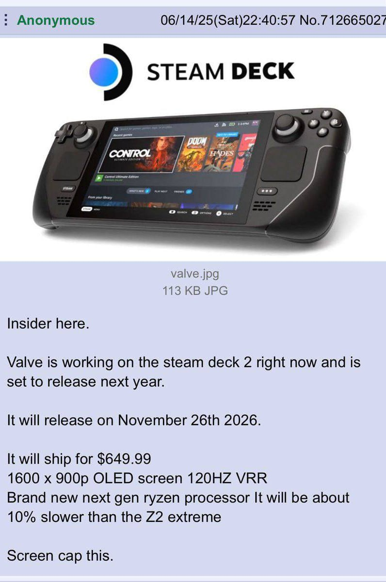 >>2517460 Верится слабо, уже сейчас портативки продают на AI 9, которые z2 могут в рот дать, так ещё и толкать будут в конце следующего года за около 70к, когда за ту же цену можно будет мощнее раза в 2 взять. Думаю пиздеж, габен не настолько еблан, у него ж идея гейминг доступным сделать, а где доступность и 650 баксов?