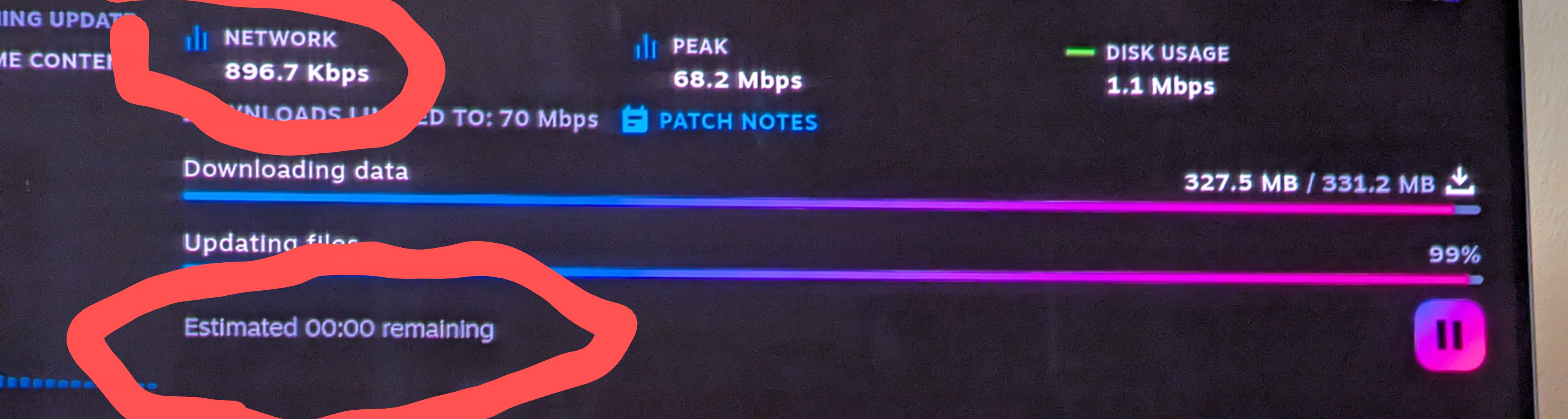 У всех так? Недавно началось. Качает шейдер пре кешинг, все быстро. Под конец скорость падает очень сильно, осталось времени 00:00 и оно так 5 минут ещё докачивает/компилит. Иногда дольше.