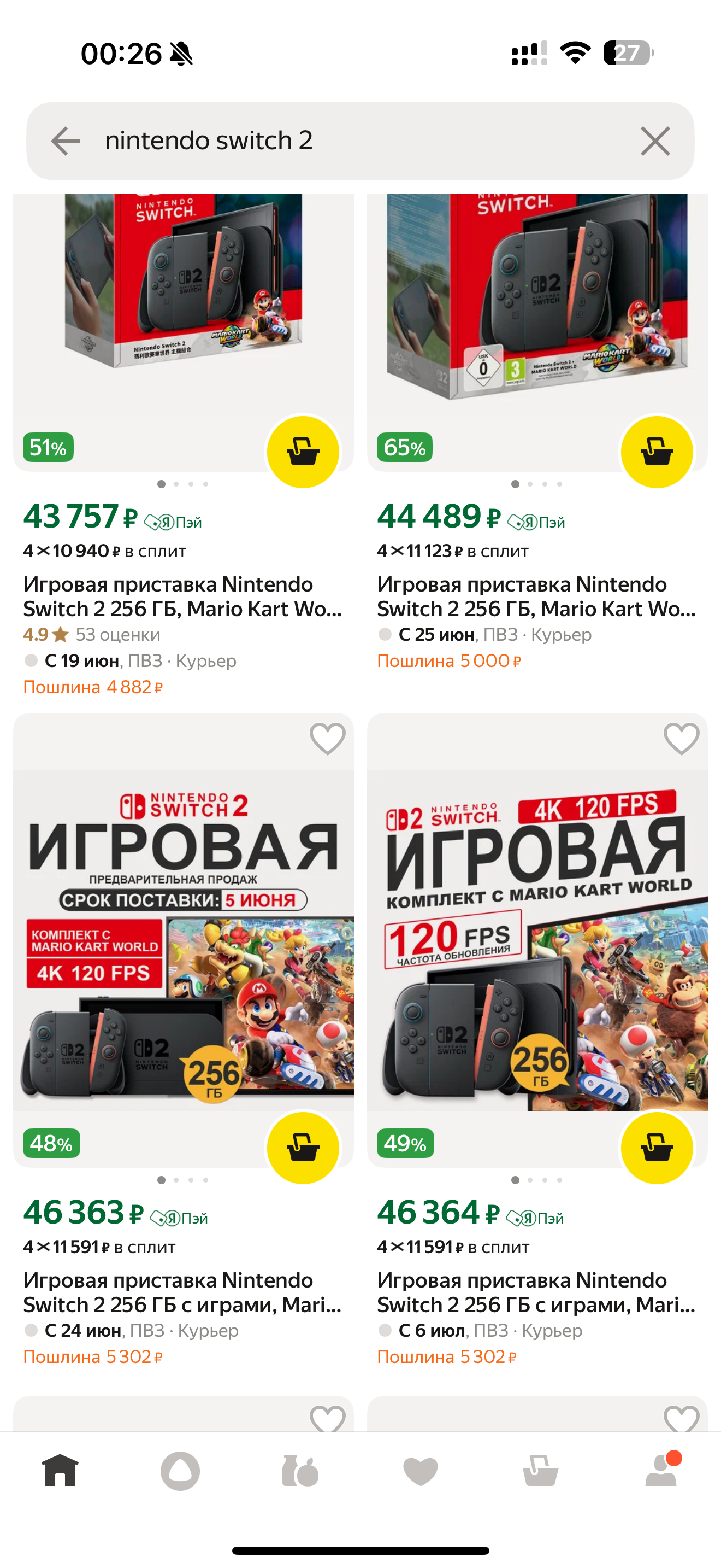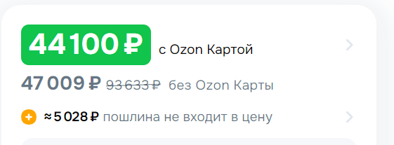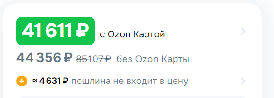 >>2514830 И сдек и озон смотрел, может у меня озон не тот, но цены были по 60к, алиджон не смотрел. Так я же написал: >50к + пошлина Думал и так очевидно, что выйдет 56-57к.
