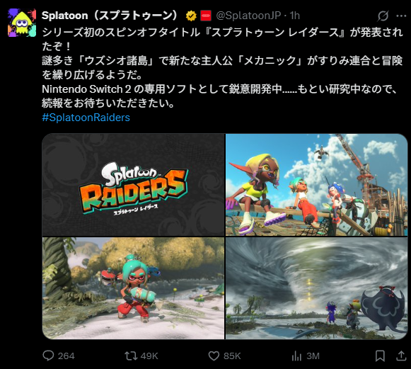 >>2515657 Nintendo announced Splatoon Raiders for Switch 2. This is a brand new Splatoon spinoff.
