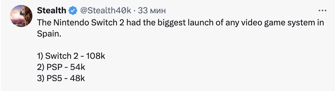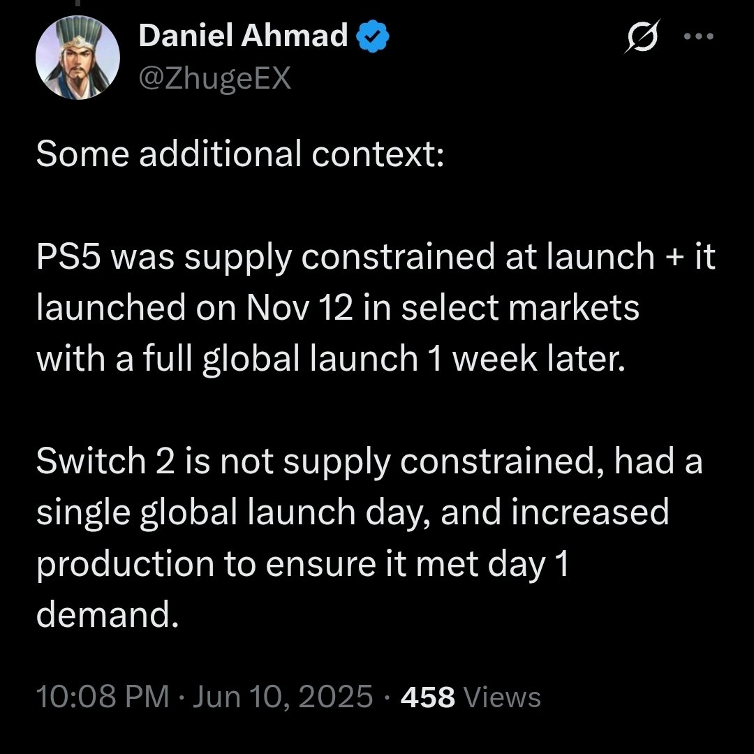 >>2515792 >пик Ой как удобно сравнивать запуск свича 2 с запуском пс5. Люди делают вид что забыли, в какое время и как происходил запуск пс5. Из-за дефицита чипов пс5 нельзя было купить просто придя в магаз. В день релиза консоль получили только те, кто оформлял предзаказы, и то на всех не хватило, а кто предзаказы не оформлял, могли официально купить консоль только через несколько недель, ну или через перекупов по оверпрайсу. Поэтому сравнение с пс5 тут некорректное.