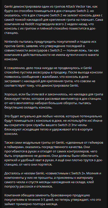 А вот Нинтендо такой хернёй никогда не занималась. Никогда не подбивала разработчиков врать, никогда не заносила игрожурам чемоданы и т.д. У Нинтендо безупречная репутация, так что если кто-то каким-либо образом решил высказаться о свиче 2, это его личное непроплаченное мнение.