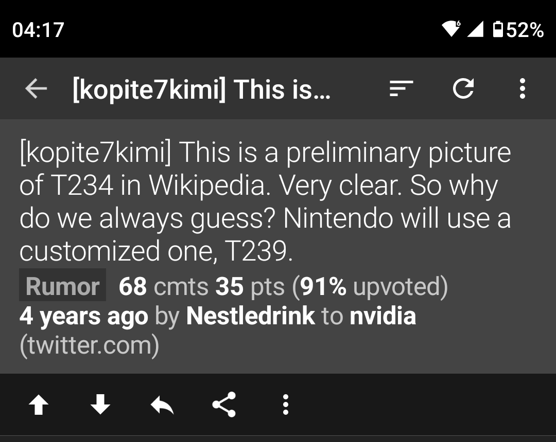 >>2516749 В то время как я с тобой согласен но дружище кому не пох сколько там нанометров процессор? Только каким-то цифродрочерам. Свич это не про производительность точно. Это про экзы и бренд как эпл.