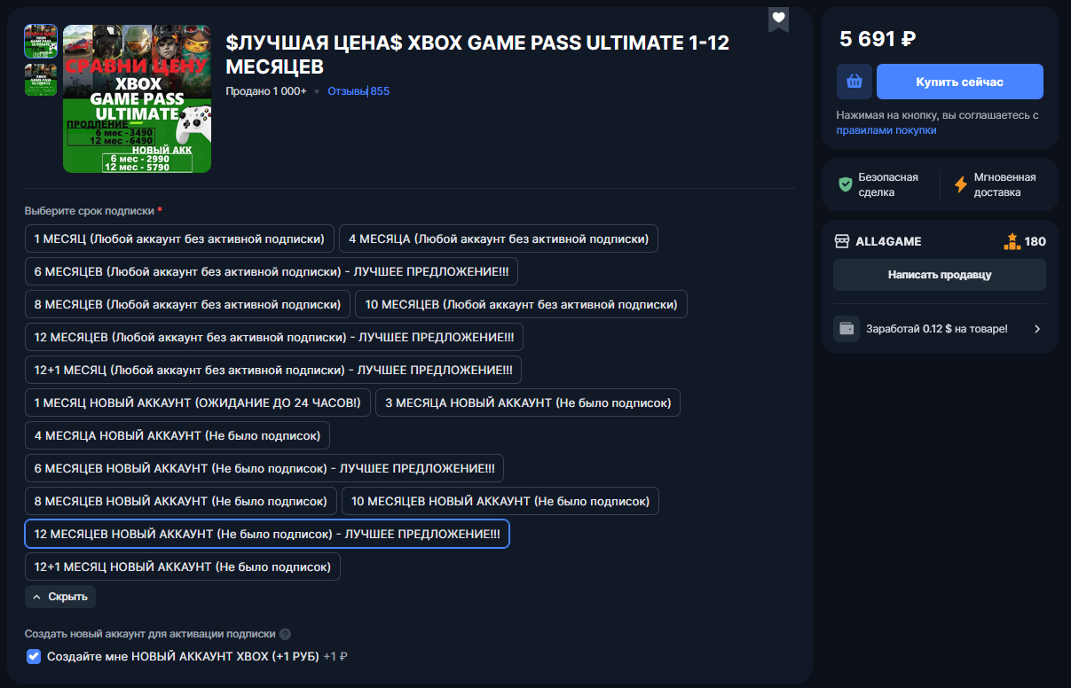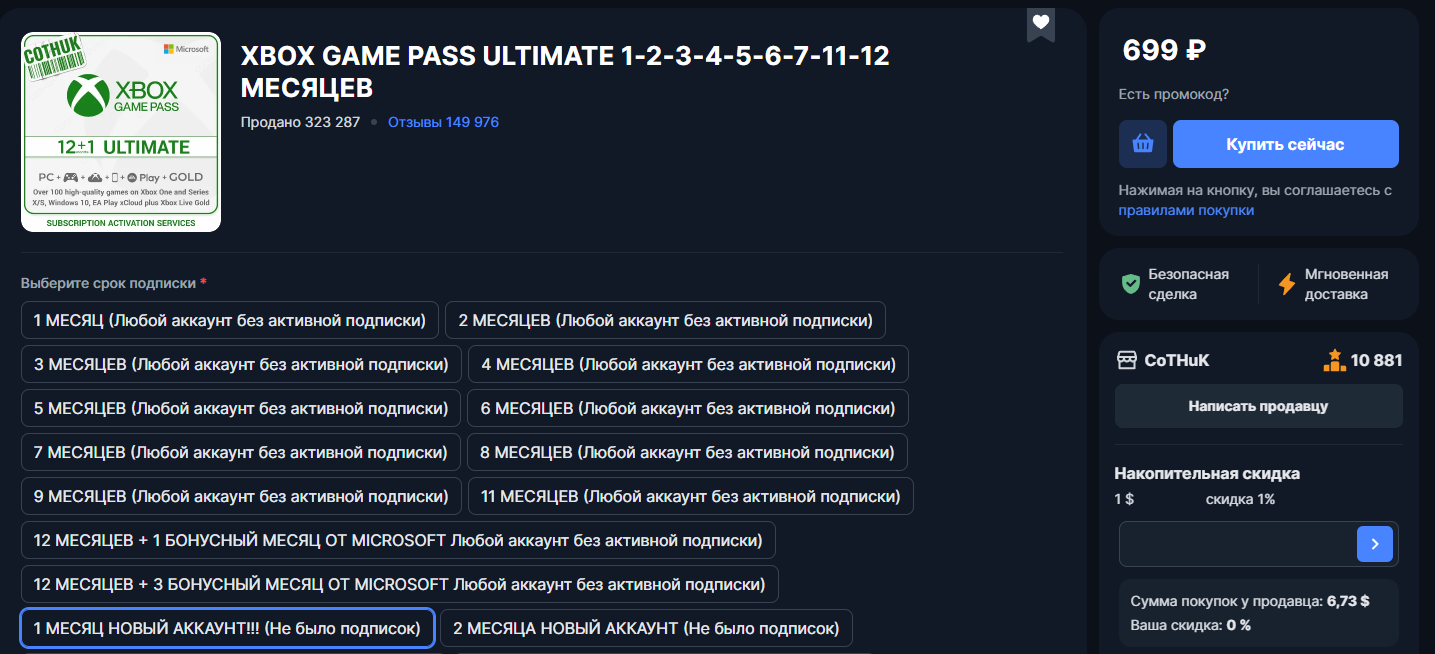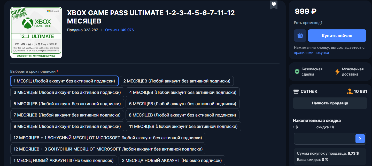 Не знаю где лучше всего задать этот вопрос. Задам здесь. На плати продаются майкрософт аккаунты с 12 месяцами геймпасс ультимейта за какие-то адекватные деньги (около 750 рублей).