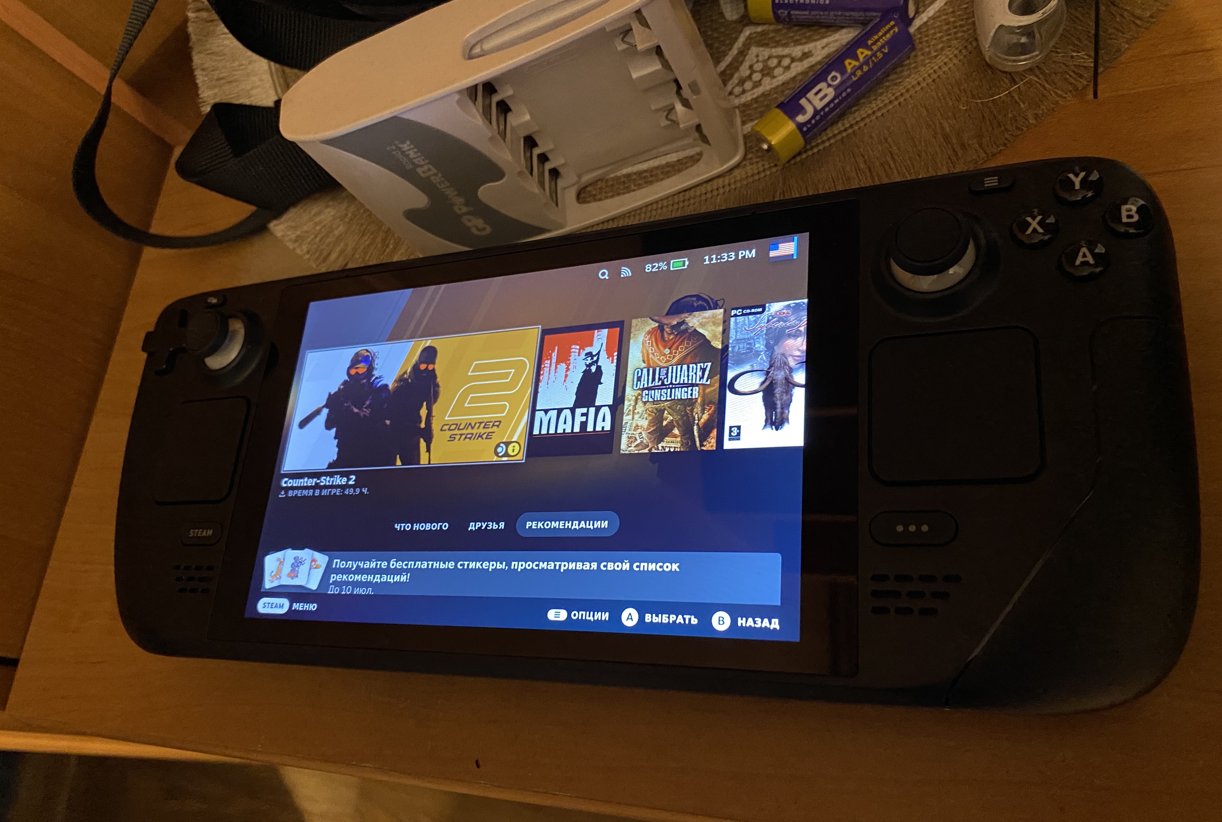 >>2523329 Что ж, принимайте в клуб, пришла дека и я уже насладился ею Очень понравились трекпады, удобнее даже чем стики, сижу с геймпадами уже лет 15 то на хбох 360, то на пк, и всегда хотелось попробовать тот самый стим контроллер. Классно что придумали такую классную вещь на стим деке, также нравится что лимит фпс и оверлей работает с коробки, помню в вар тандере на моём пк выдаёт 350фпс и потребление 350ватт, если не riva tuner по другому никак не поставить лимит, а здесь в любой игре классно работает лок.