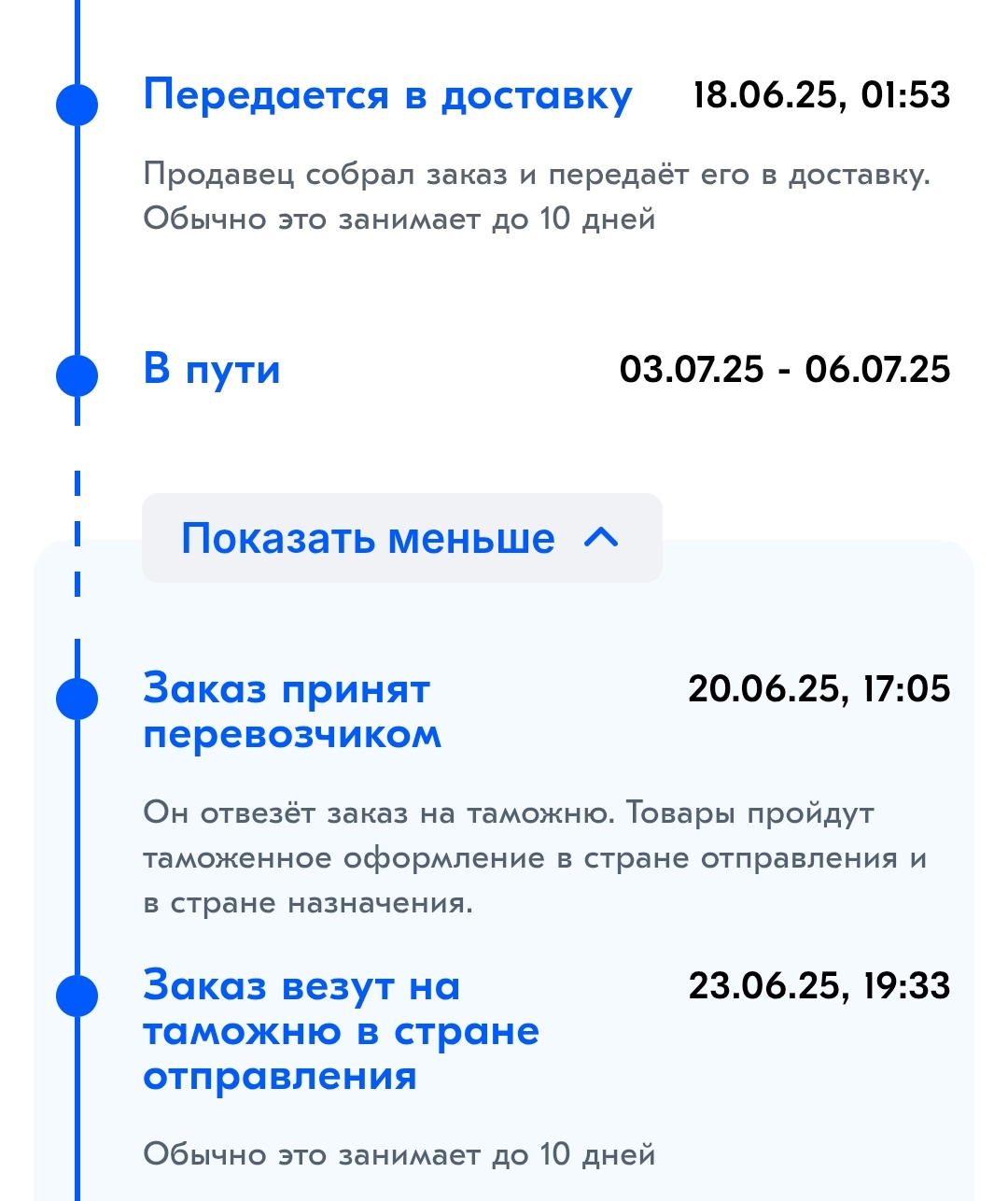 >>2523529 Также было. А потом хуяк хуяк и все пункты отметились. Товар приехал за стандартные две недели. Короче если не отмечено, то это не всегда показатель того, что ничего не двигается.