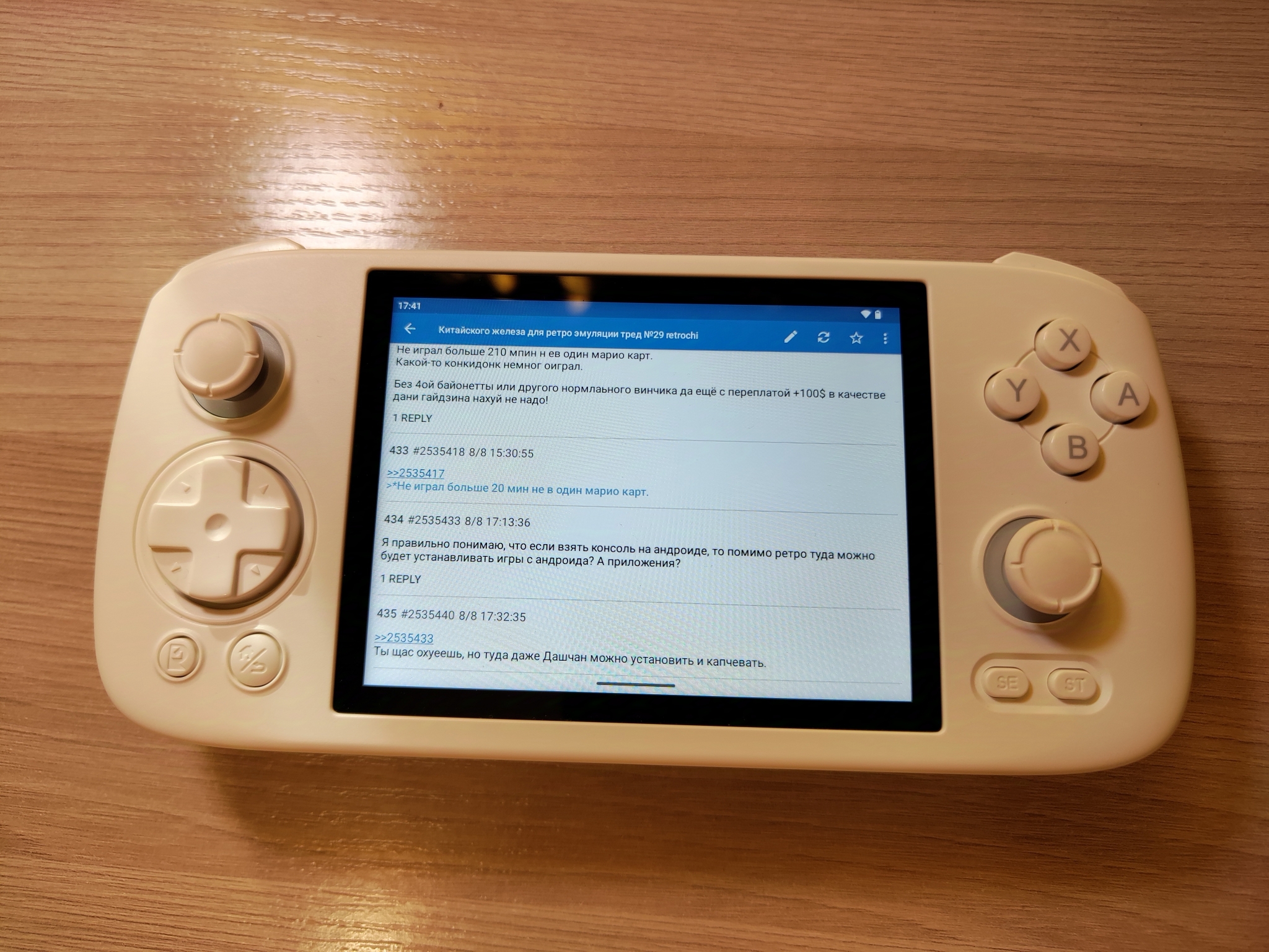 >>2537240 Там говорят задержка есть пиздец у этого доп экрана, хуй знает правда или нет. >>2537242 >Тыщ за 25 можно 3дску купить Которой красная цена 15 и которая уже рассыпается в руках, разъёбаные петли, жётый экран, сдоченные кнопки, красота >которую ты будешь кое как с вылетами эмулировать на этом пердеже. У меня телефон с тем же процессором что и ретроид 5, всё летает в разрешении х4 прошёл дохуя игр.