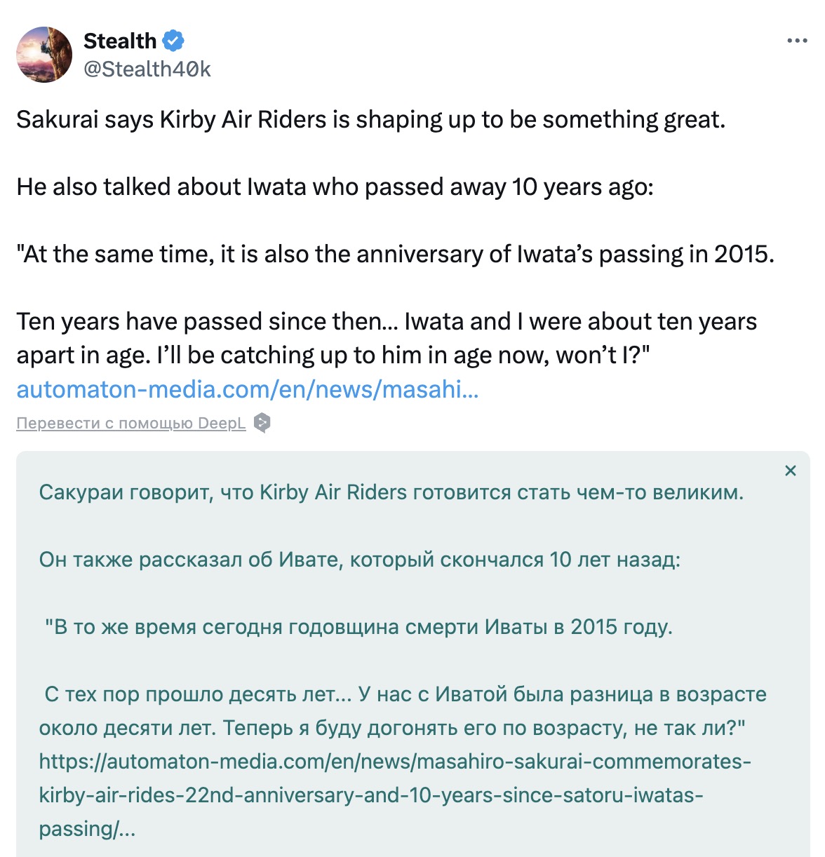 >>2528388 Лол, пока сони пропускает очередную крупную выставку из-за того, что ей тупо нечего показывать, и отменяет оставшиеся игры одну за другой, у мариопобедителей на ближайшие полгода просто пир >топовый марио карт >топовый ДК (который заткнул за пояс кодзиму и французов) >гоночки по кирби (проект мечты одного из величайших разрабов всех времён) >метроид прайм 4 >спин-офф по покемонам >новая часть ритм хевена >бладборн 2 И это не учитывая того, что в ближайшие две недели пройдёт новый директ, где анонсируют ёбаную кучу игр на первую половину 2026.