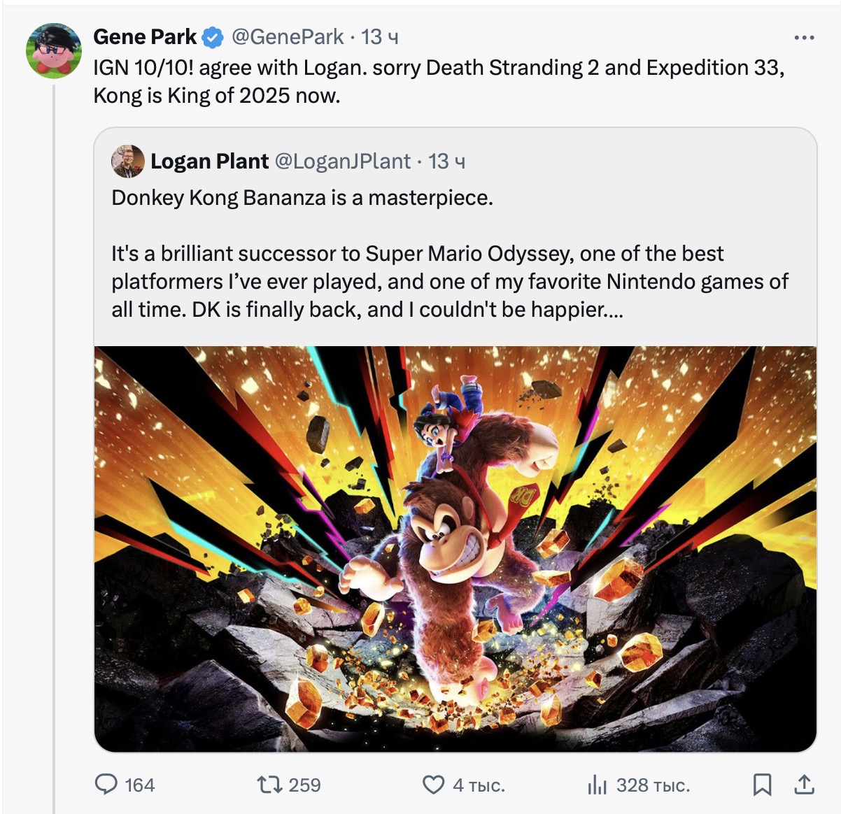 Геймдиректор Donkey Kong Bananza Кадзуя Такахаси сообщил, что ему известно о периодических проблемах с производительностью, на которые указывали западные издания.