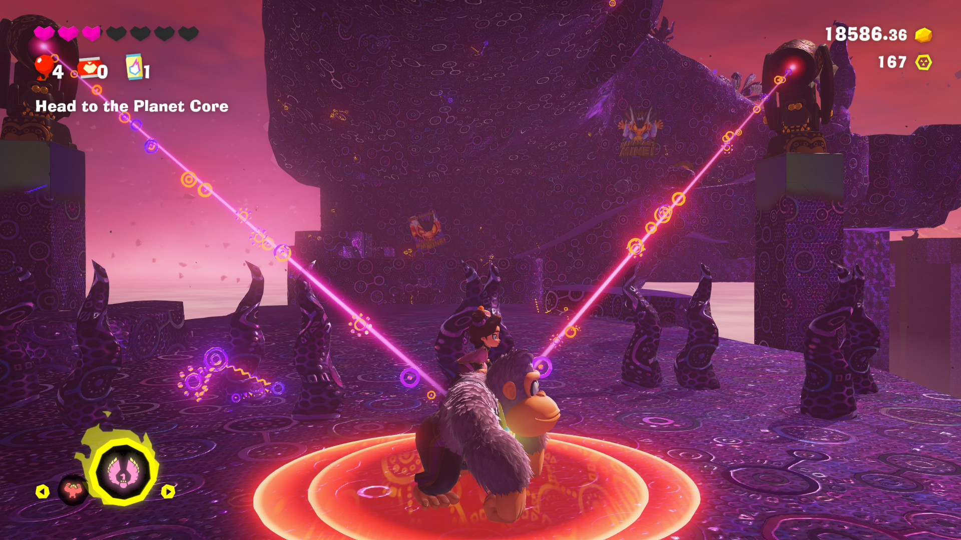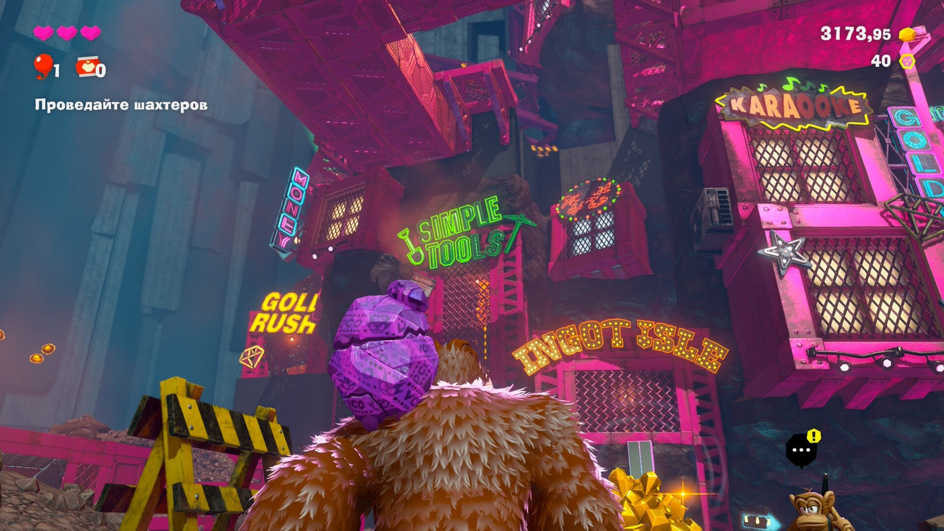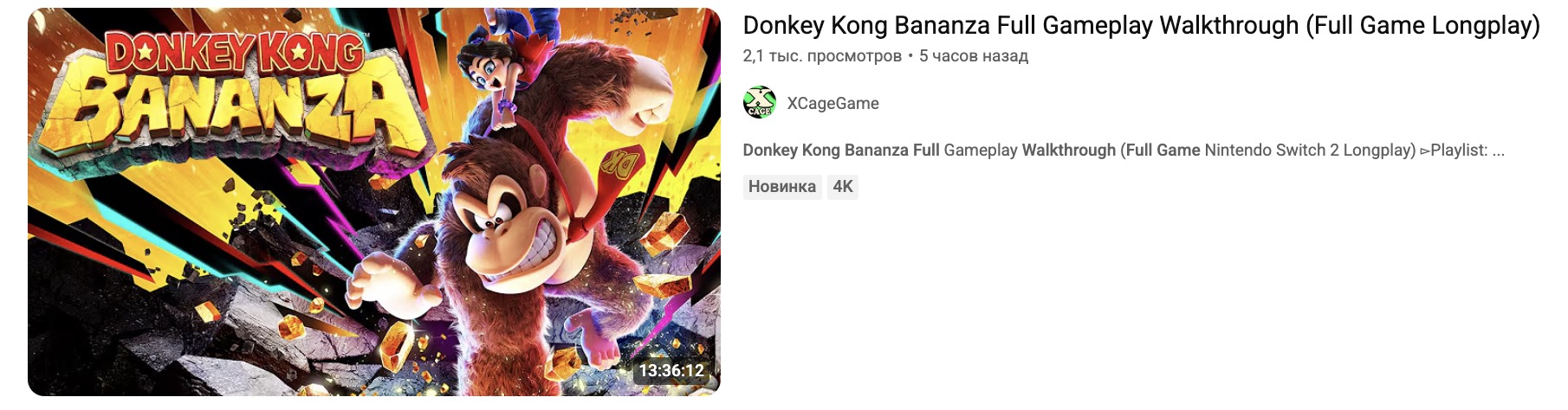 С места – в карьер. Ребят, это великолепие! Это лютый маст-хэв. Ради нового DK стоит приобрести Nintendo Switch 2. Если вы скучали по качественной 3d-адвенчуре в духе Super Mario Odyssey или AstroBot, Bananza утолит ваш голод. Сразу важно указать, что игра начинается за считанные мгновения. Нам показывают немую сценку, где обезьяны долбят шахты. 15-20 секунд и всё. Появляется DK. Ты в игре!!! Я просто обожаю такой подход! Никаких титров, получасовых роликов с якобы «введением в курс дела», после которых ты ещё полчаса отклоняешь стик вперёд и продолжаешь слушать «осмысленные» диалоги. В первую очередь хочу отметить фантастический импакт от происходящего. Все удары Конга ощущаются тяжёлыми и увесистыми. Вибрация, стилистическая мгновенная задержка в момент попадания по врагу, а главное – звук: всё это доводит погружение до каких-то немыслимых масштабов. Только послушайте, как, например, звучат удары камня о камень, рассыпающиеся в песок враги, сбор золотых слитков, разрушение стеклянного банана. Это очень круто! Эксплоринг стал более хаотичным. Раньше ты должен был изучать окружение, находить подозрительные места, основываясь на определённой логике левел-дизайна. И, да, это всё осталось, кругом куча намёков, быть наблюдательным не помешает, но, грубо говоря, это всё стало менее обязательным, ведь можно просто разнести всё подчистую. Заветный сундук сам тебя найдет! К слову, о сундуках. Уже на первой локации (точнее, даже на первом её пласте) от контента просто разбегаются глаза. Нинтендо как-то умудряется делать игры, в которых тебе постоянно хочется собрать всё! Сундуки с картами ископаемых и сокровищами, непосредственно сами ископаемые, редкие реликвии и, конечно, бананы! Я соберу всё, это точно! Порадовали и мини-активностями. Всего пара часов игры, а тут уже и маленькие волны мобов с таймером (которые, я уверен, ближе к концу дадут жару), и разрушение кристаллических хрупких фигур на время, и бонусные комнаты с кучей золота, и данжи с поиском трёх бананов, один из которых уже в дебюте игры пришлось так хорошенько поискать. Кстати, пока искал конкретно этот банан, умудрился залезть в парочку даже более неочевидных мест, куда, казалось бы, игроку и не надо. Ан-нет, бочку поставили разрабы – значит предусмотрели! Подобное было и в Odyssey. Bananza радует и более мелкими деталями. Например, игра ведёт статистику разрушенных тобой поверхностей разных типов в квадратных метрах и даёт за это бонусы. Каменные плиты можно прочитать лишь с той стороны, на которой эта надпись, собственно, есть. Отсылки на Tears of the Kingdom, забавные описания в меню, красивые, стильные загрузочные экраны с путевыми советами: всё это выполнено со вкусом и любовью. Ну не делают так инди-разрабы (при всём уважении), с которыми Нин постоянно сравнивают. Бюджет чувствуется буквально во всём! Но главное: всё мной перечисленное – это лишь часть контента фрагмента первой большой локации. Полина ещё не выбралась из камушка, ДК не научился трансформироваться в зебру, до первого магазинчика со шмотками я не добрался, в режиме «Artist» не упражнялся, фоторежим не открыл, вкусить прокачку ещё не успел. При этом, у меня уже есть несколько мест, в которые нужно бы вернуться. Повторюсь, глаза разбегаются! Два-три часа игры, народ! В общем, иначе быть не могло, это предсказуемо и бана(н)льно, но, да, Bananza меня одурманивает и влюбляет. С пе