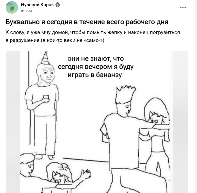 >>2528845 У меня твои воображаемые друзья не отнимут персонажей игр. Если какой-то трипфаг использует Принцессу Пич как аватарку, меня это не касается, и я её пощу по настроению, а не чтобы тронуть тонкую душевную организацию козлов из закрепа на выгуле.