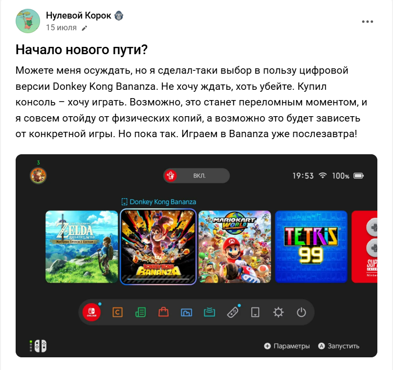 Блин игранул в Донки Конга и теперь мне немног страшно... А не побежал ли я впереди паровоза? Игра настолько афигенная даже по сравнению с одисеей, что боюсь что теперь пройдя её и начав Зельду Ботву (до этого ток линкс эвейкининг прошёл) уже не ощущу всё величие на фоне ДК.. А ещё Байонетта 3 не пройдена. Как вы догадались в кружку нинтендо я со 2го свитча. Так скажите же мне мудрейшие из мудрейших, оправданны ли мои переживания?