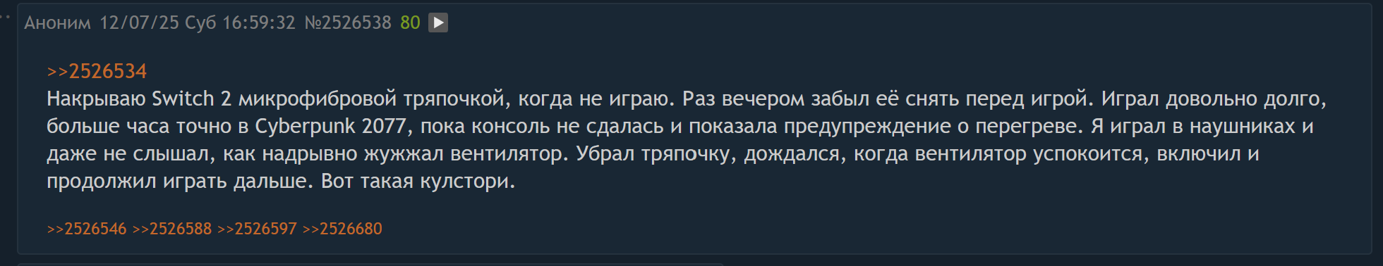 ВНИМАНИЕ! Анон, будь бдителен! Если увидишь подозрительного анонимуса, который демонстративно выказывает разочарование консолью Nintendo Switch 2 или играми для неё, немедленно запрашивай пруф наличия консоли и игр. Если подозрительный анонимус под любым предлогом отказывается предоставлять пруф с супом, знай, ты разговариваешь с ярым адептом консолей сони — вредителем-калопедиком!