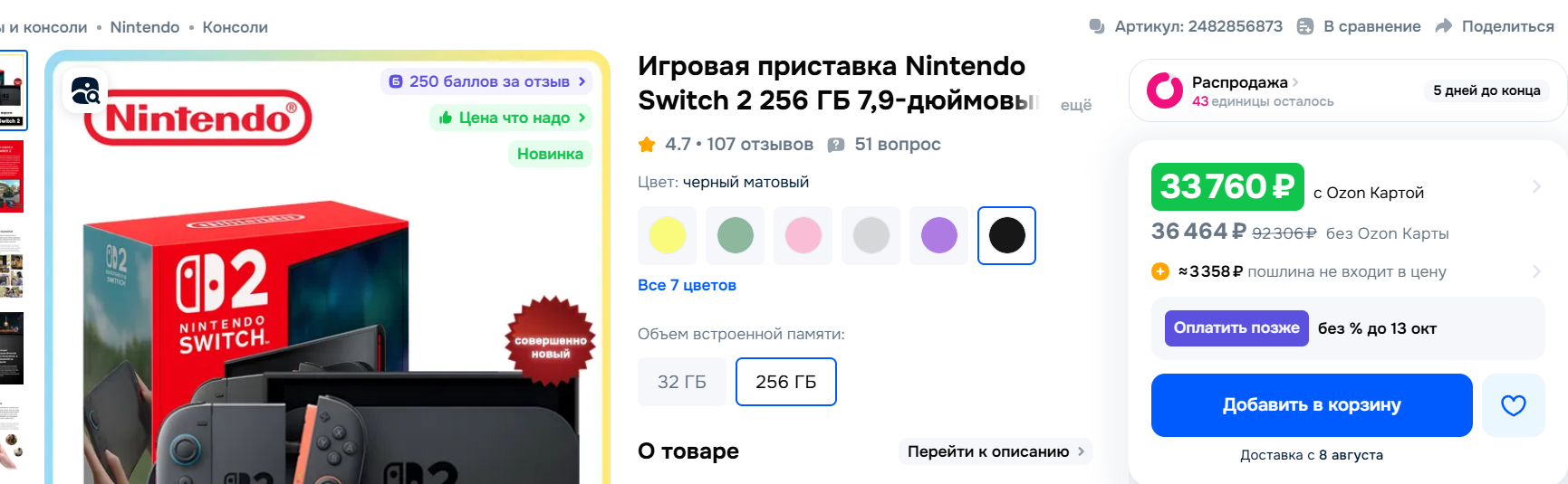 До появления Switch 2 рекорд удерживала PlayStation 4 — в ноябре 2013 года американские ритейлеры продали 1,1 миллиона консолей.
