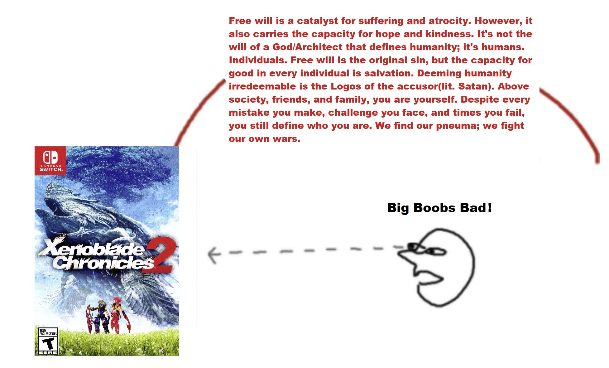 В принципе столь бурная реакция лишь в очередной раз подтверждает общепризнанный факт - Xenoblade Chronicles 2 это шедевр. У посредственных произведений просто не бывает столь ярых ненавистников, готовых потратить буквально всё время своей жизни чтобы рассказать всем в интернете о своих чувствах.