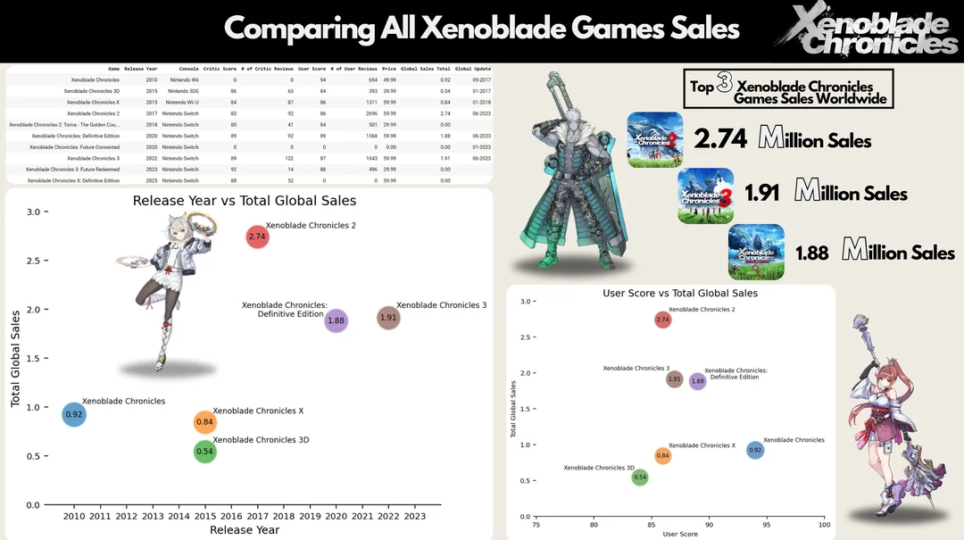 Такахаши со своим переживанием и боязнью на тему "Сделать прямое продолжение истории предыдущей части" решил сделать 3ю часть саму в себе как и предыдущие части, но где то там имеющий общий сюжет и связь с прошлыми частями. Потому что всё ещё видимо свежи раны с тем что сага 2 (280,000+) и 3 (343,000) продались хуже 1 (1,000,000), и он считает из-за того что это были прямые продолжения. А уж с успехом вторых блейдов (2,700,000) над 1ми (Изначальные продажи 0,920,000 потом DE продались под 1,880,000) он ещё больше сам себя убедил что нужно рекламировать и делать игры как "Сами в себе", а фанатам давать нужные связи не рушив при этом впечатления новичка.