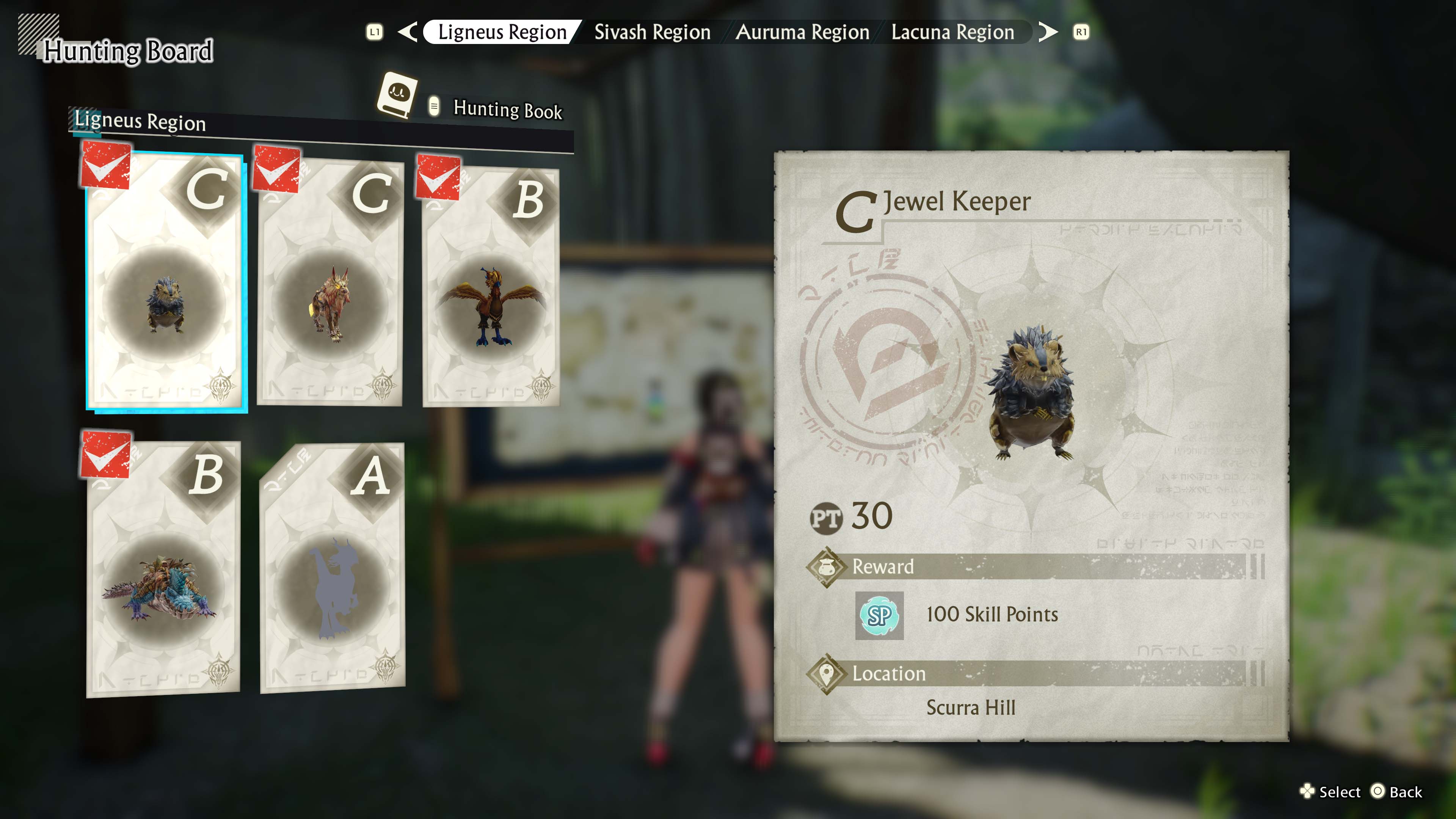 Search for monster traces based on the information in the Hunting Book.