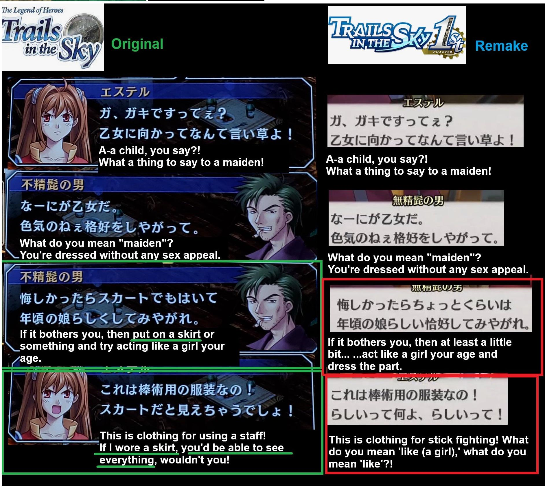 Спойлеры по п5 (в гринтексте не убирайте теги спойлеров, если что): Например, из того что я уже нашёл, в англюсике Такасе обвиняют Каваками в том что она "sex worker", тогда как в оригинале было "風俗まがい". Это очень большая разница. "風俗" это проституция, но "まがい" означает "подобие, близкое к, похожее но ещё не то". Каваками одевалась в костюм горничной, унижалась и разговаривала как горничная, делала массажи помимо бытовухи, но проституцией занимались в другой, аффилированной компании, куда она думала пойти, но не пошла. Это на пару ступенек выше проституции, даже близко не такой же зашквар. Поэтому "まがい". Её реакция на обвинение была "откуда вы знаете", что в англюсике звучит как будто она признается, что не просто массажи делала. И я находил треды в интернетах, где обсуждают проститутка ли она, и некоторые ссылаются на эту сцену, типа она призналась сама, так что вопрос закрыт.