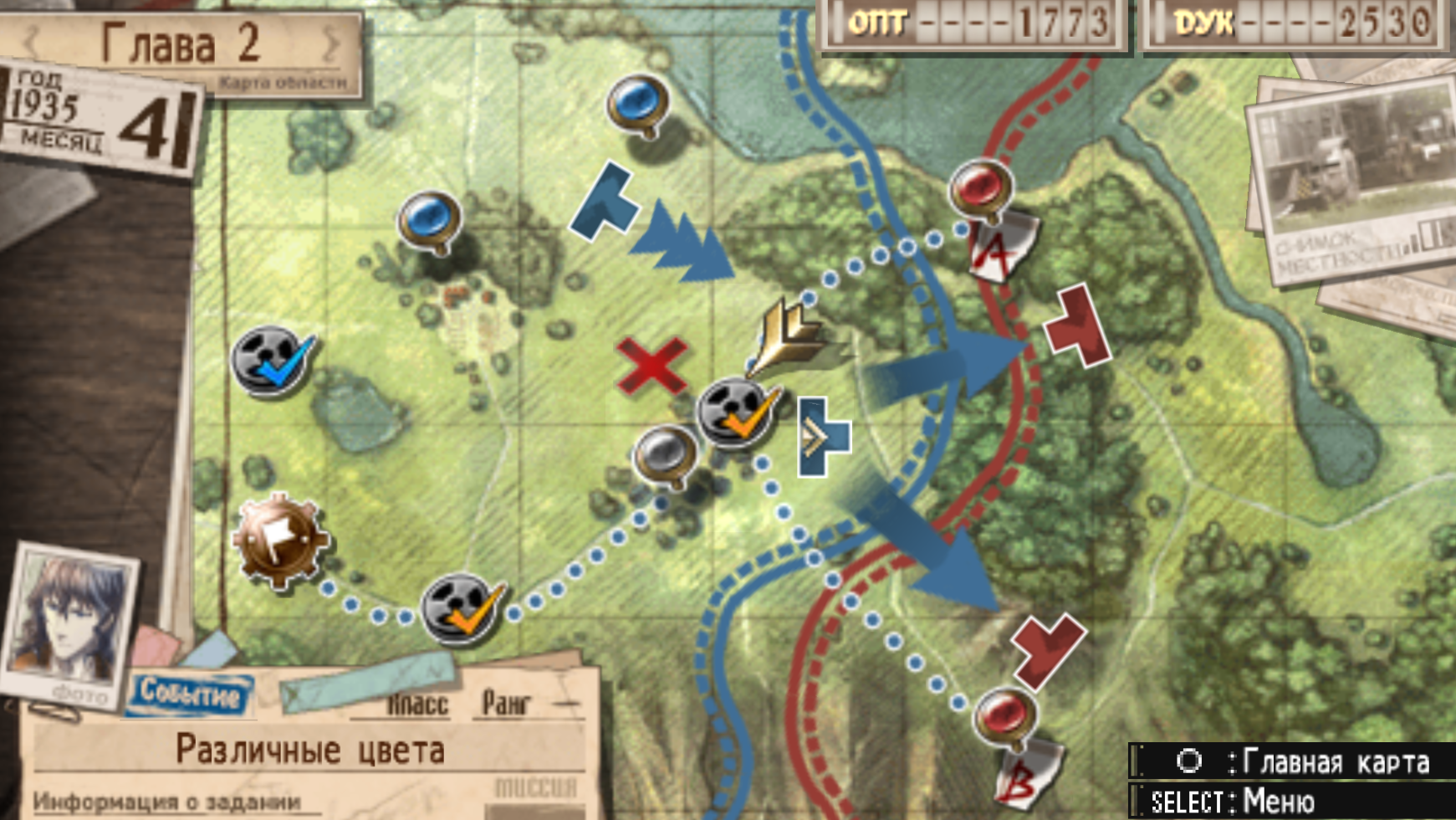 Теперь у нас не 1 карта на миссию, а миссия состоит из связанных карт, на которых происходят действия одновременно (в один ход) (Хотя и в 4й была такая миссия, но не все), а очки действия на все карты одни. Сами главы теперь это набор Глобальной карты (4 скрин) и в ней уже обычных миссий (1й скрин). Хочу сказать что такой формат идеальный для портатива, взял за пару минут пробежал 1 битву в несколько карт и закинул ПСП себе в сумку, главу так можно проходить днями. Синопсис сам что это у нас штрафбат и немного всё по другому неплох, никаких тебе разработок, сиди выкупай себе оружие и прочее. Тренер это брат тренера из 1й части что ли? . Удивился наличию уникального для этой игры класса - Милишника с щитом и молотом. Вообще прикольная идея и в старших частях (4й) думаю бы показало себя не плохо, щит который он ставит защищает от обычных ответок врагов, можо было бы абузить. Набор пероснажей уморительный. ГГ пока непонятно-стоический, но хотя бы не грустит 24/7 в начале игры.