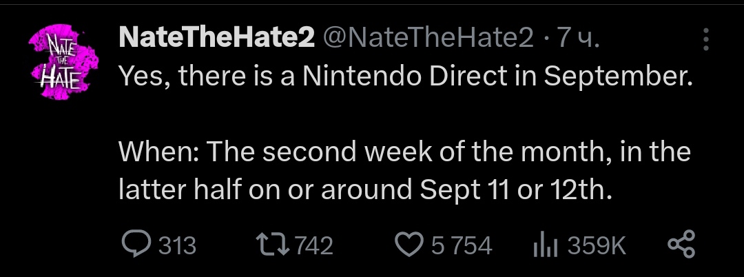 >>2544165 45 минут на все анонсы, 15 минут на годовщину Марио. Покемонов не покажут, у них свои презентации, максимум тизер быстрый, у кирби был свой директ недавно, о чем срун выше не знает.С чего бы тратить 10 минут на игру Майков тоже не ясно. Патчи максимум 5 минут если будут. Думаю покажут новую Фаер Эмблему с релизом на начало 2026, ну а так ждем Монолитов либо Бандаев с Сагой.