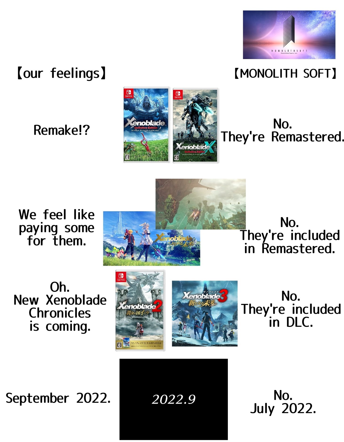 Положняк таков: Xenoblade 1 - аниме для бумеров Xenoblade 2 - аниме для умственно неполноценных Xenoblade 3 - аниме для нормисов Xenoblade X - аниме для Дениса Мейджера PS: На Switch 2 патчей нет