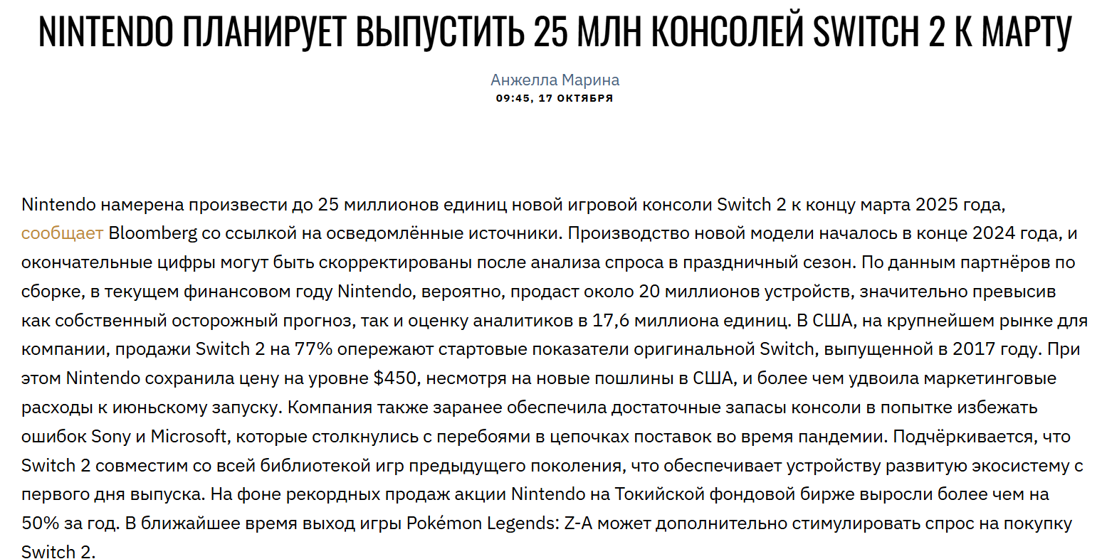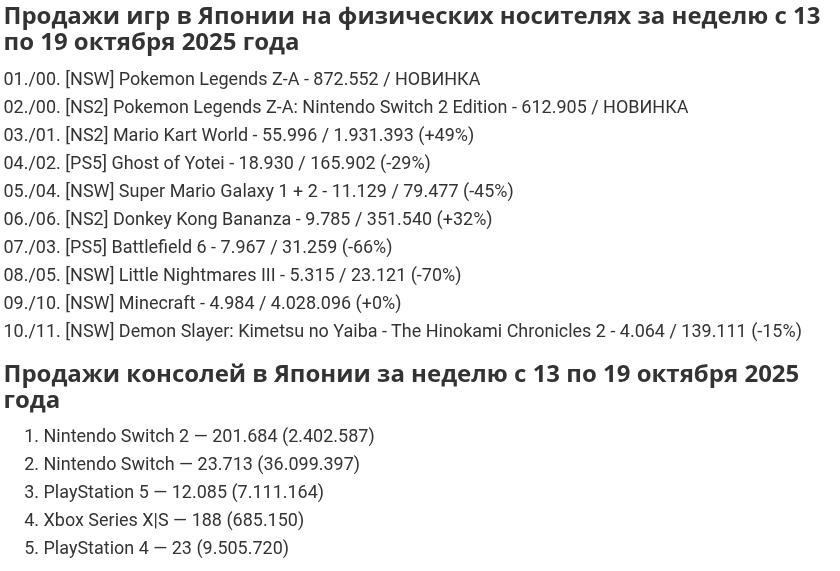 Pokemon Legends: Z-A взорвала японский чарт, продажи Nintendo Switch 2 взлетели