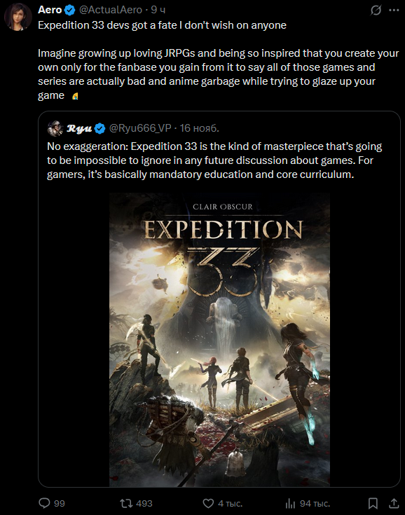 Начал играть в экспедицию, и бля, какая же топовая игруха. Визуал топовый, интерфейс красивый, геймплей задорный. Сперва думал, будет воротить от парирований и игры в целом, потому что показалась оверхайпом, но как же я рад ошибаться. В сравнении с японским копеечным щьаком небо и земля.