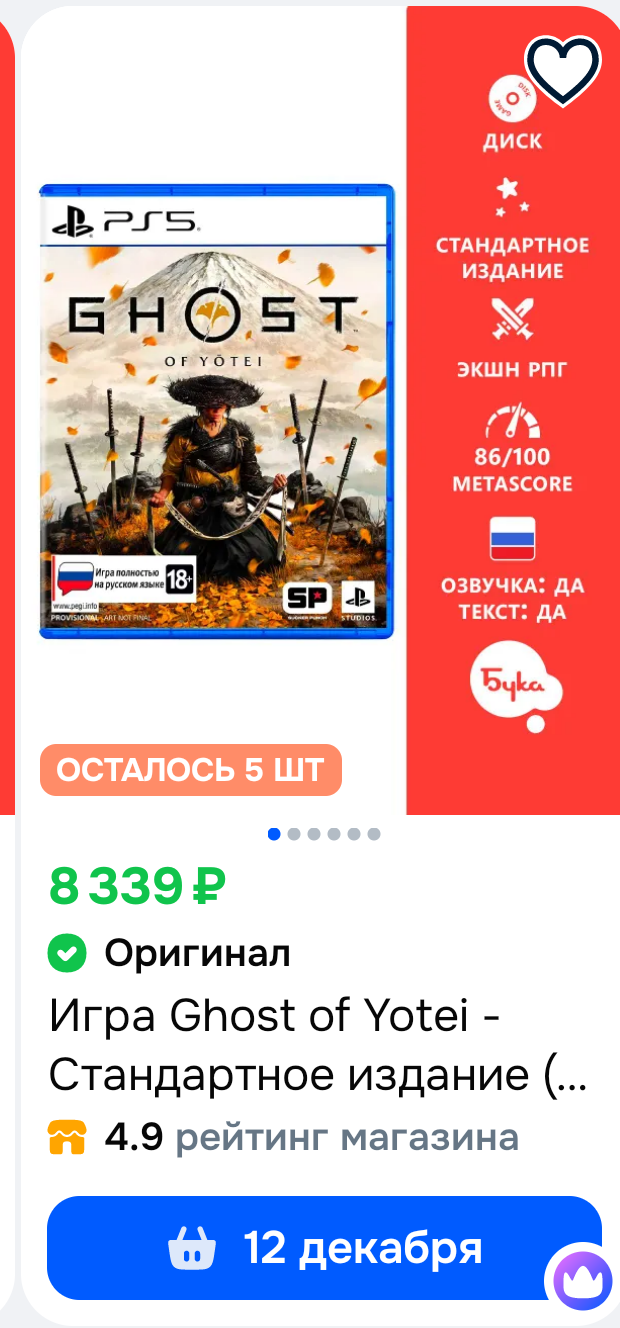 >>2566287 Так. 8339р за Ghost of Yotei? Явно паль с озоньчека. В официальном магазине Буки диск стоит 8999р (без учёта доставки). Версия за 8339 — бутлег для селюков, пляшуших под РетроФМ на флешке.