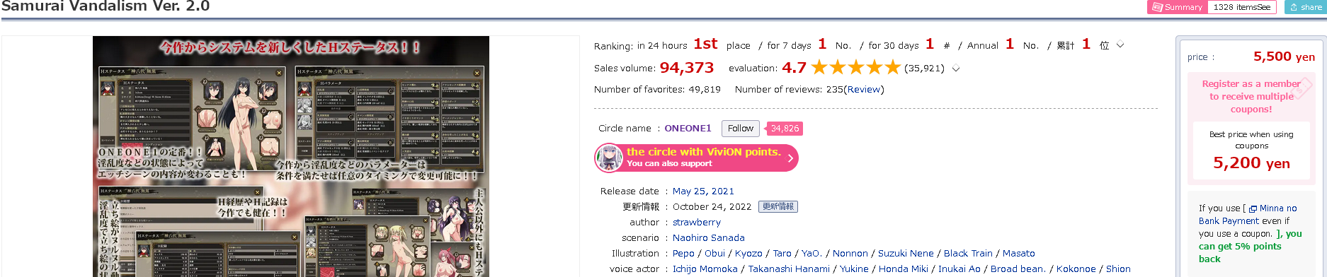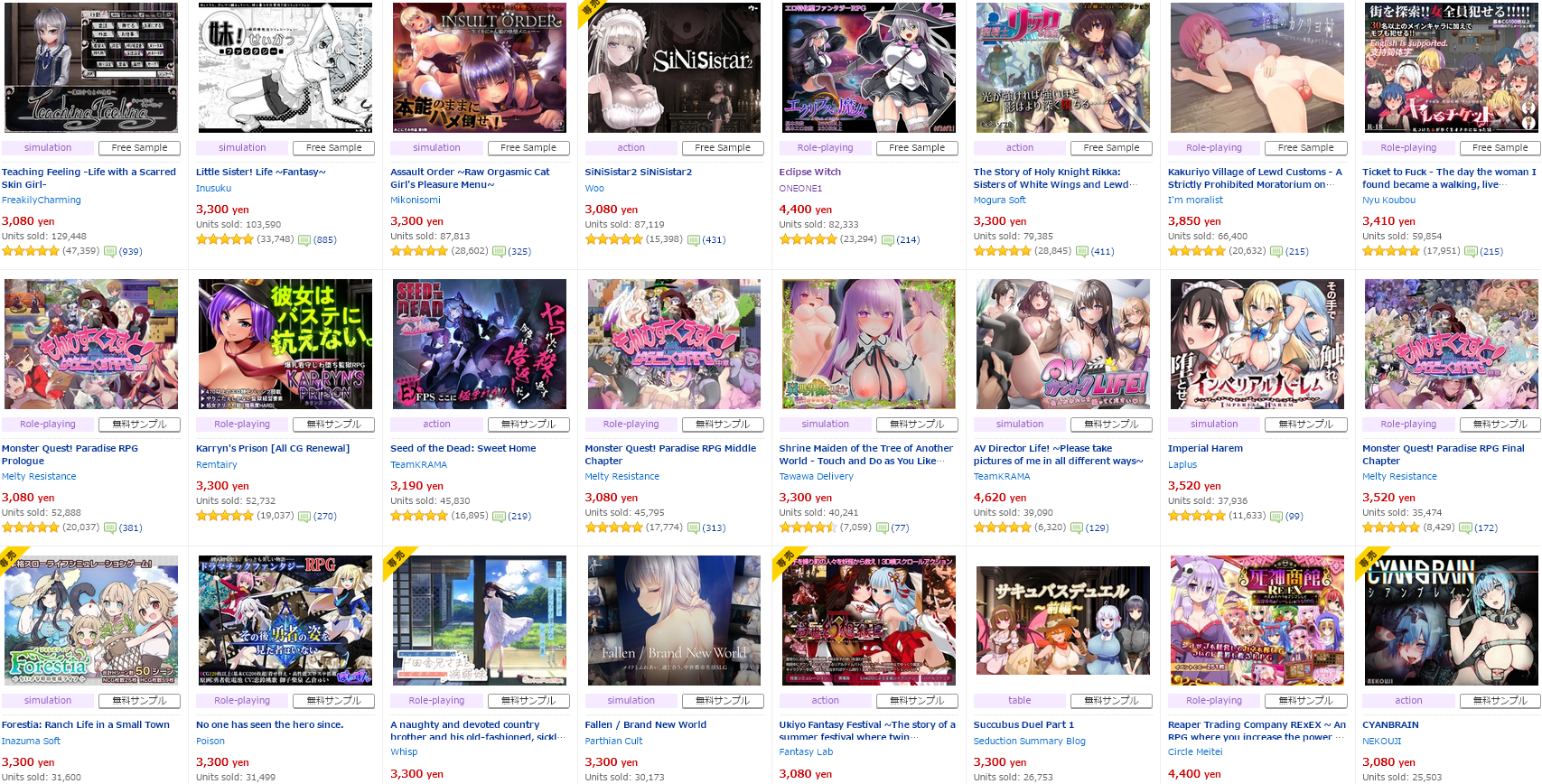 >>2563689 Кстати, хентай там продают на миллионы баксов. Вот, выбрал средне популярную игру от ONEONE1, с вычетом процентов и переводом в USD получил солидные 2 323 967 А таких игр у них много.
