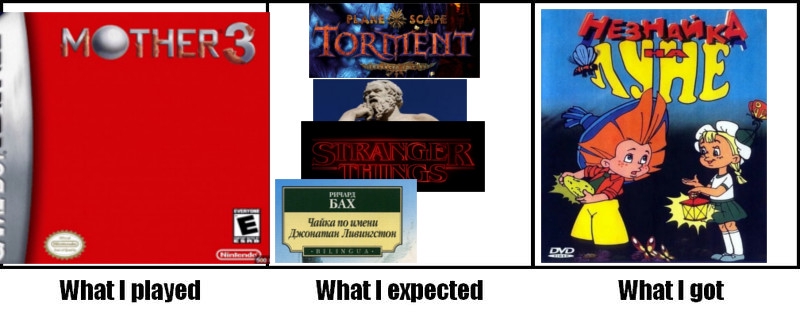 >>2563800 Получается, что похвалил Mother 3. Так как незнайка на луне это остросоциальная драма, выдающееся филосвское высказывание и заодно антиутопия которую автор умудрился засунуть в сказку подходящую как для детей так и для взрослых, снарядив ее охуенно серьезным подтекстом. Твои стрендж сингс, Бах, графомния тормент и устаревшая на >2к лет философия и рядом не стояли как по содержанию так и по исполнению.