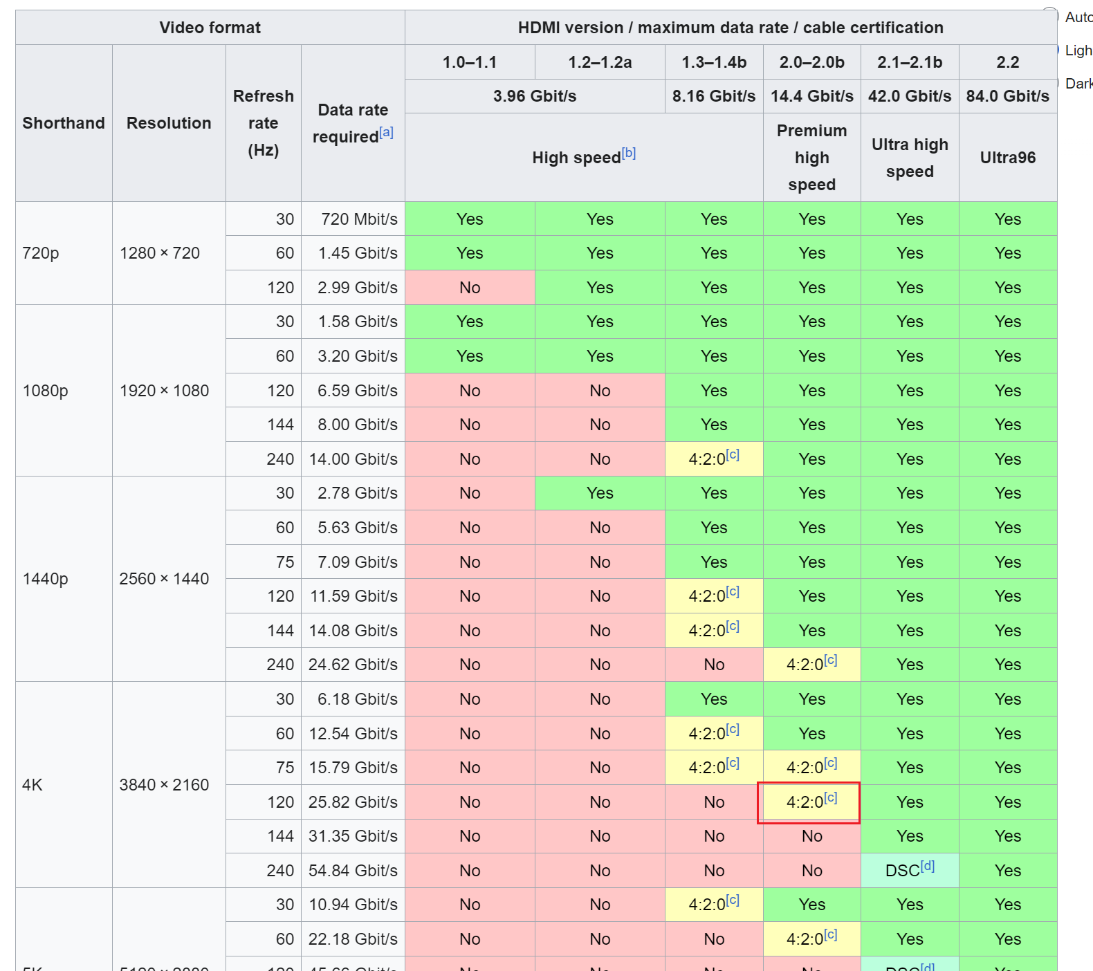 >>2559559 DP 1.4 32,4 Гбит/с так что хер там плавал не будет там никаких 120Hz в 4K. На этой картинке написано что 4K при 60 кадрах, откуда ты 120 высрал.