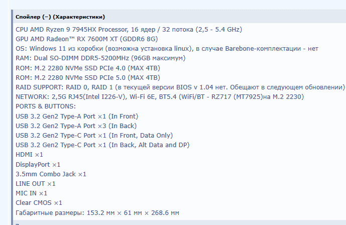 Неплохой мини пк, возможно возьму если версию на 16Gb видеопамяти сделают и передние порты на USB-C заменят. Почему никто из вас даже фотки с внутренним устройством не запостил.