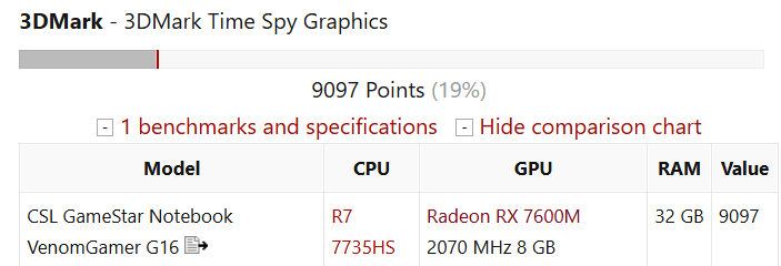 >>2559686 Ошибся, там и стоит RX7600M. Потребление 90Вт. Видимо оверклокнули чтобы при пике 110 Вт потребляла, он наверняка будет сбрасывать из-за температуры уже через 10 минут до 90Вт.