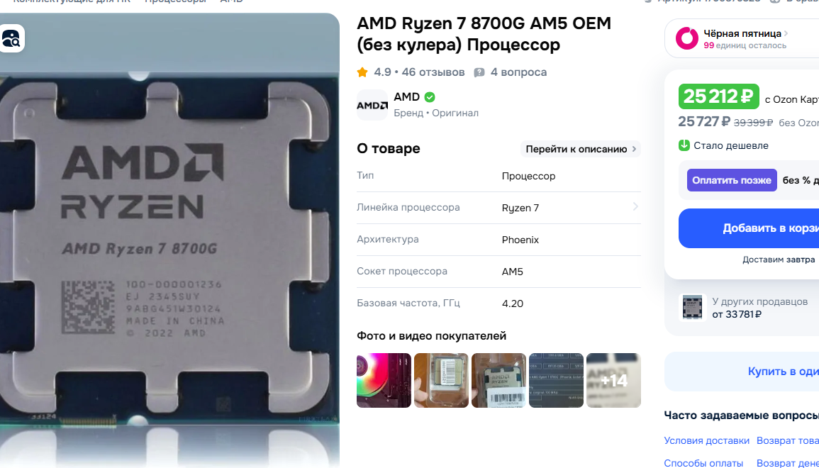 >Ближайший сокетный аналог стоит от 320 бачей. И там нету 780м при этом. Во первых не стоит, а стоил в 2023 году в момент релиза, во вторых найс в железе разбираешься.