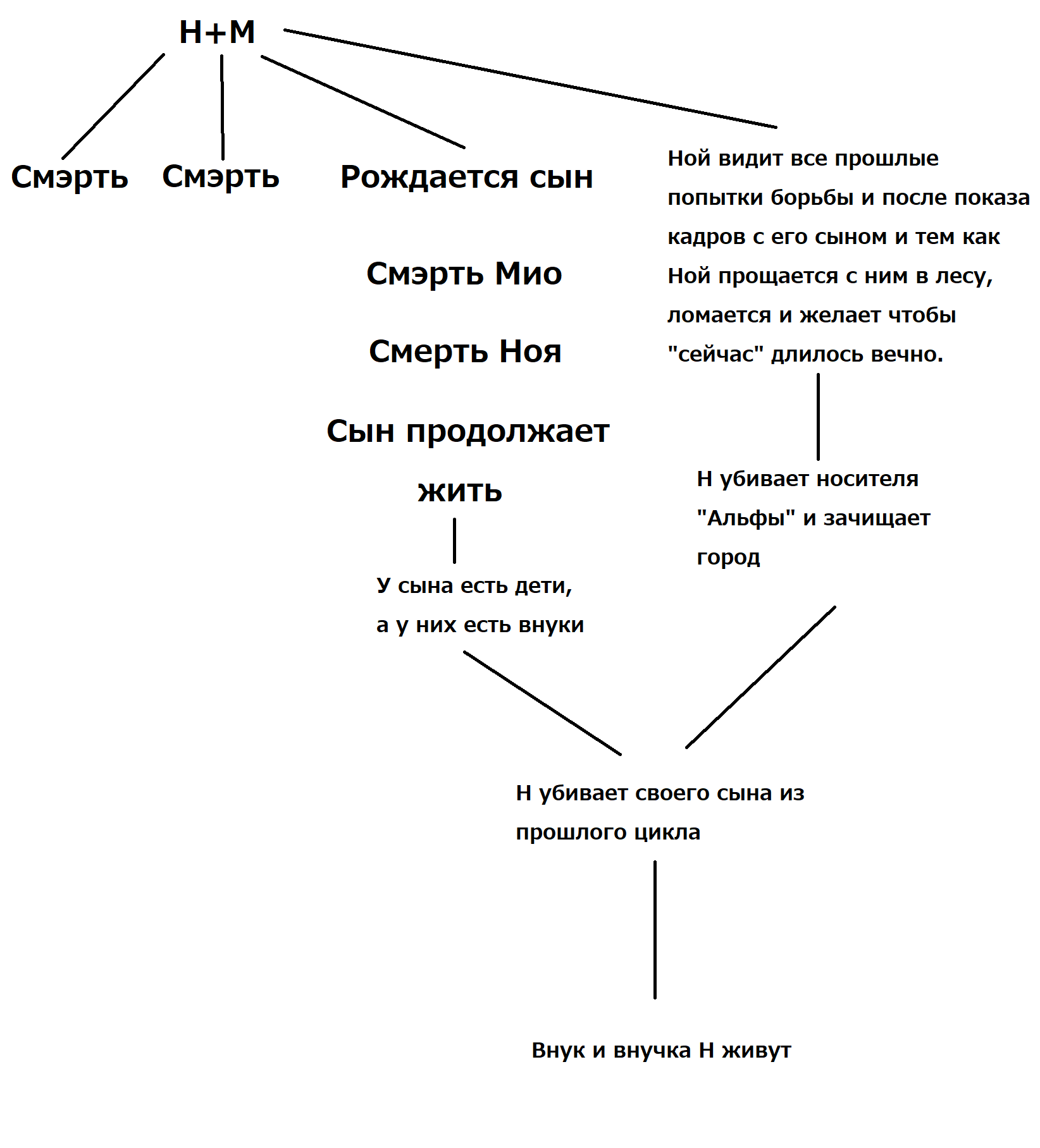 Ну да, согласен. Ной то один, ситуации разные. Собственно ребёнок был у Ноя и Мио, точкп. Просто Н к этому отношения прямого не имел. Хотя если тест на отцовство провести, будет 100% совпадение.